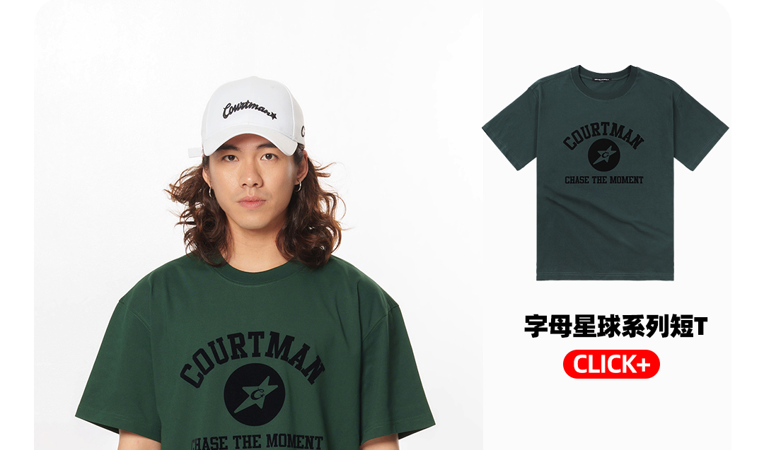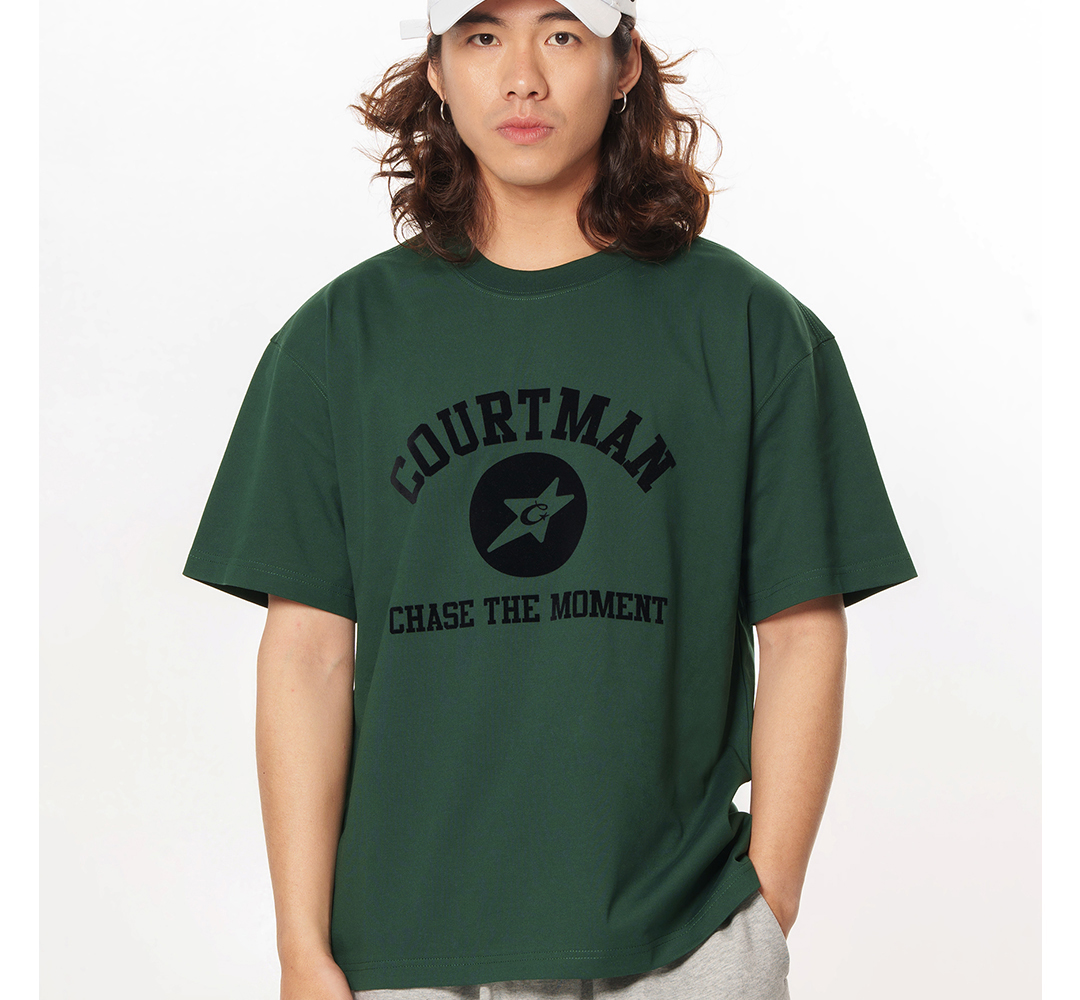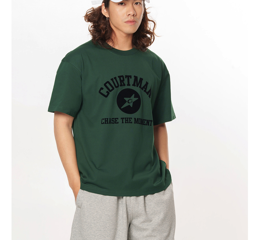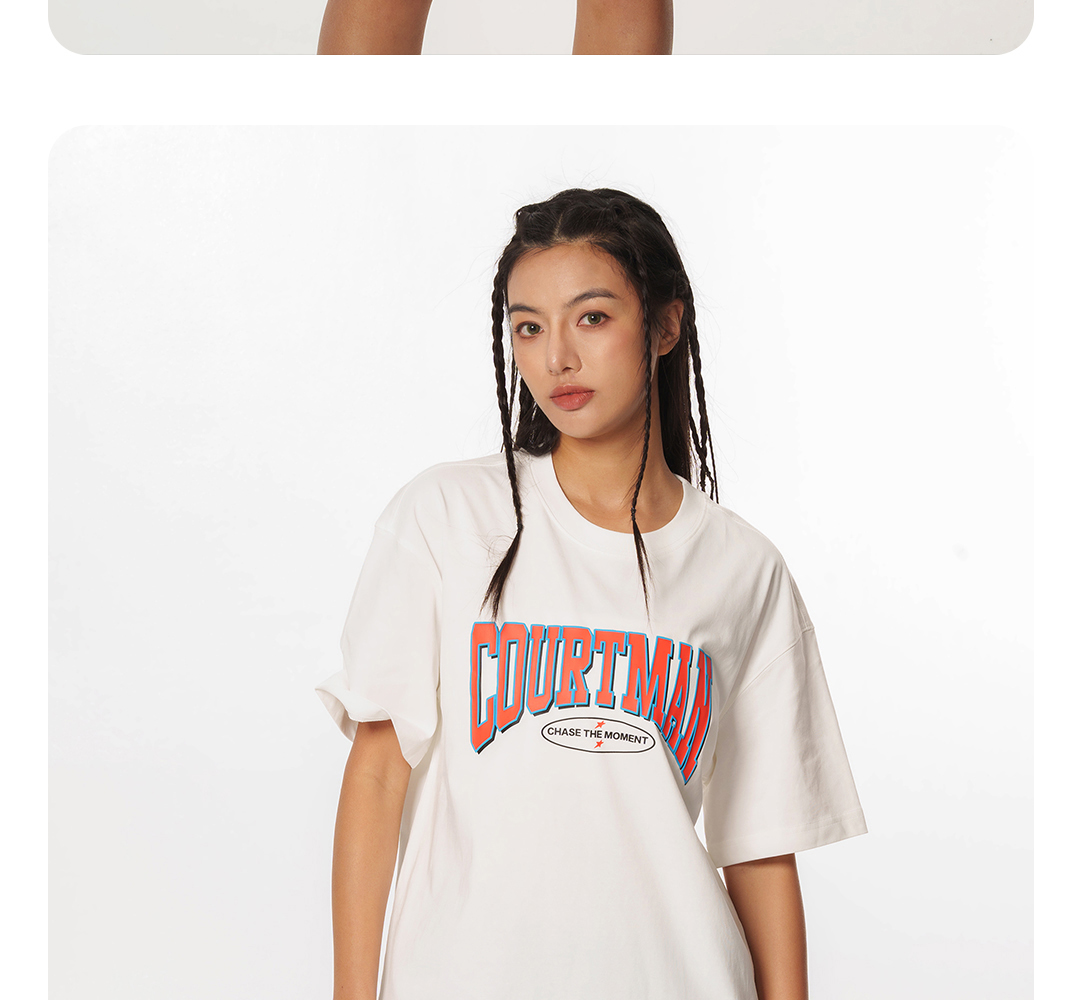 COURTMAN长袖T恤C星印花2023秋季新品运动休闲美式百搭宽松上衣潮