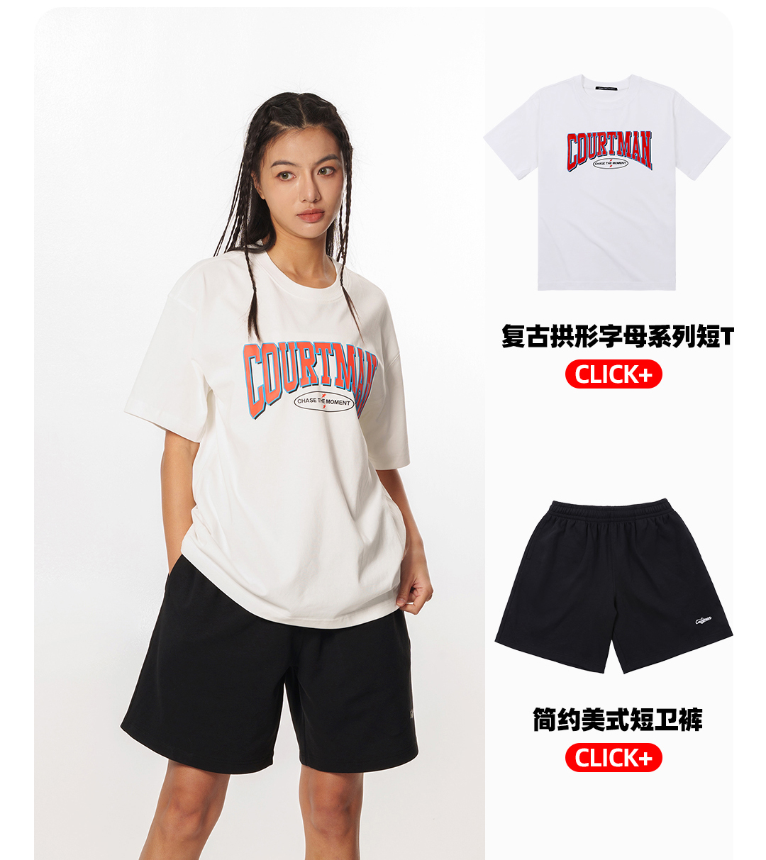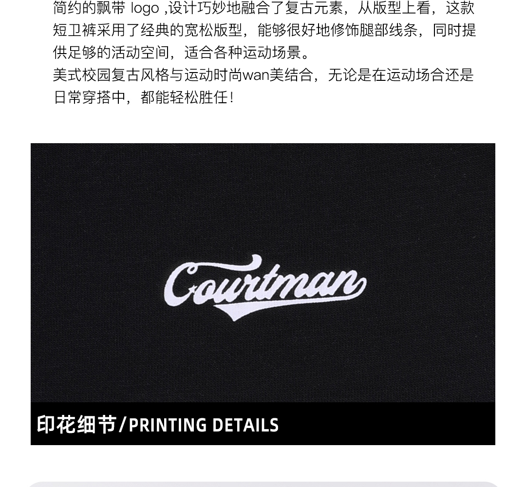 【美式街头风】采用了撕裂,撞色,等街头元素,版型是四分裤版型,