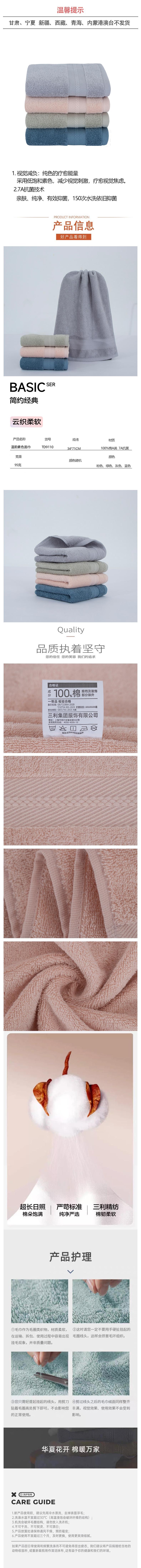 三利 温韵素色面巾34*71cm TD9110