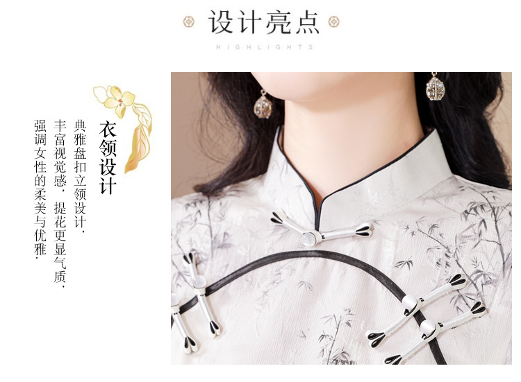 蓝色刺绣加绒加厚冬装国风改良旗袍年轻款 SC22380
