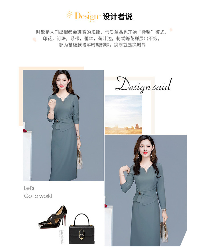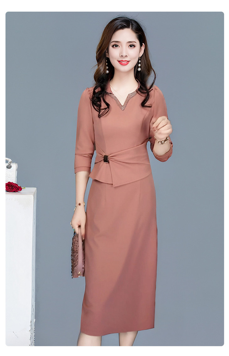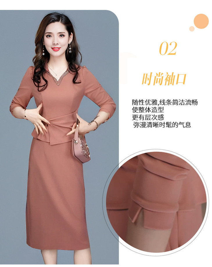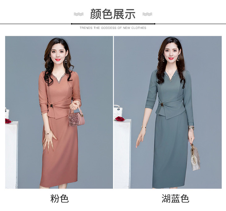 V领假两件连衣裙,气质修身时尚优雅女士过膝裙子QYM- TYH99H228