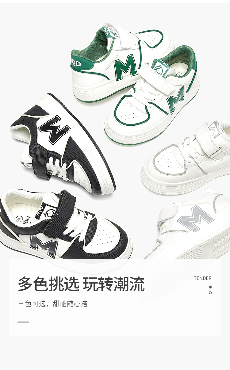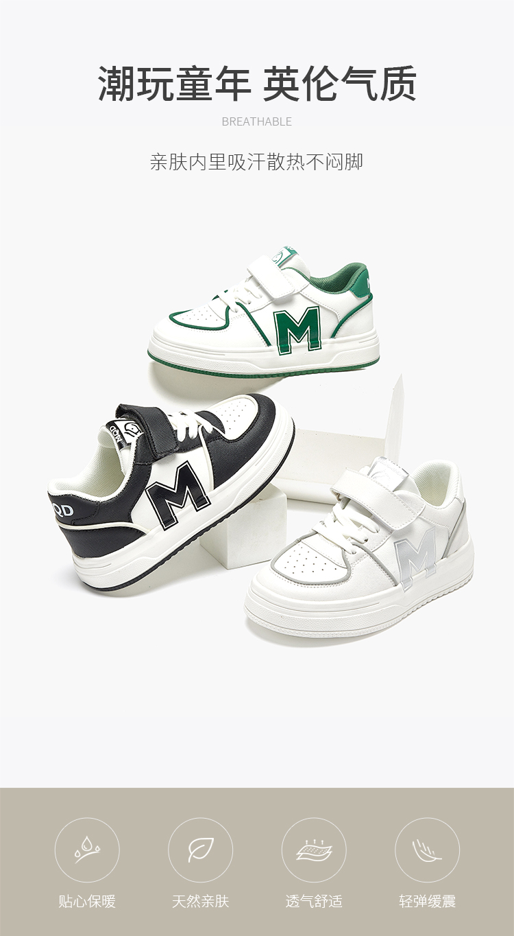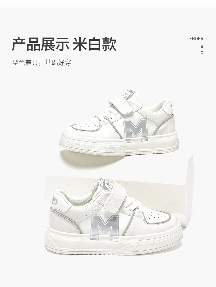 【ZY马骑顿】魔术贴小白鞋男孩鞋透气休闲女童板鞋