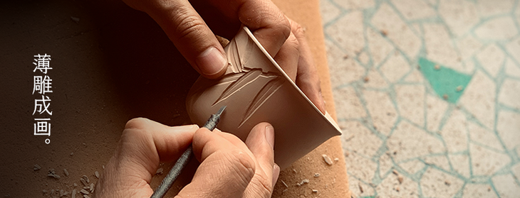 刻刀化笔,在坯体作画,层次分明,如画龙点睛。