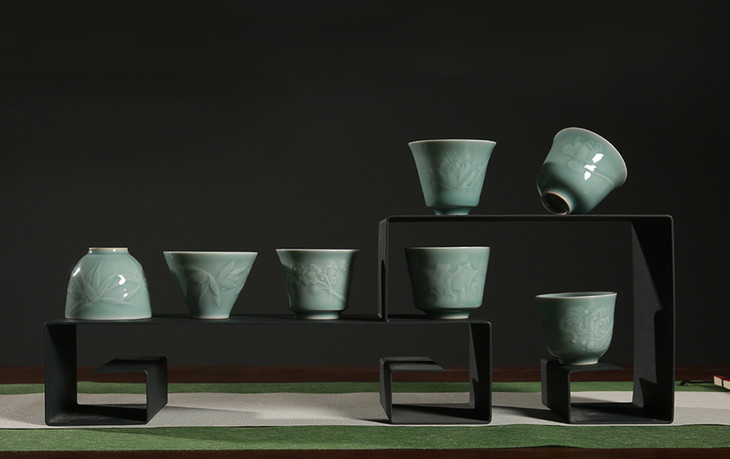 还得到龙泉青瓷大师吴新伟监制,一套涵盖7种经典盏型,每一只都不一样,素净典雅,静穆自如,最适君子之情。
