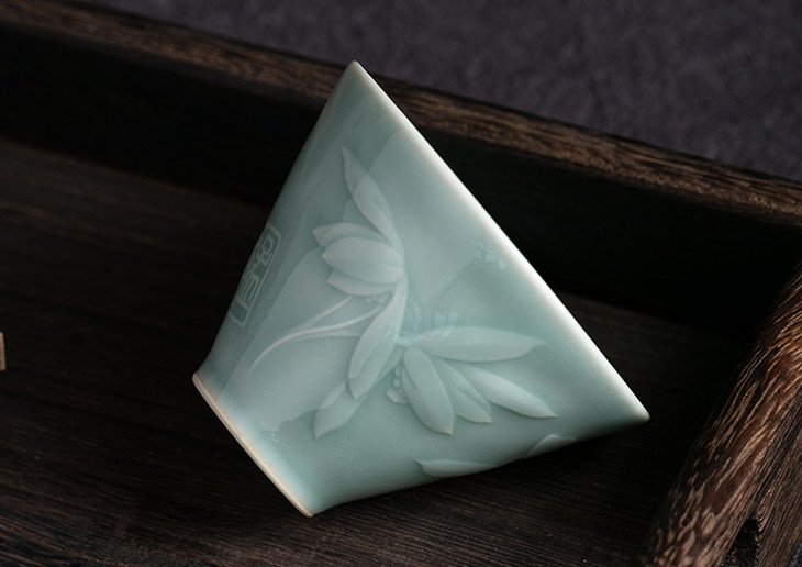 耹风杯刻上了佛教代表功德和智慧的莲花,禅茶一味,明心见性。