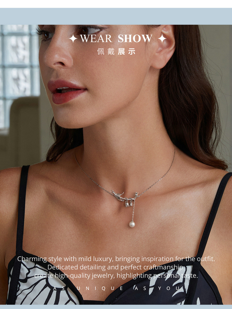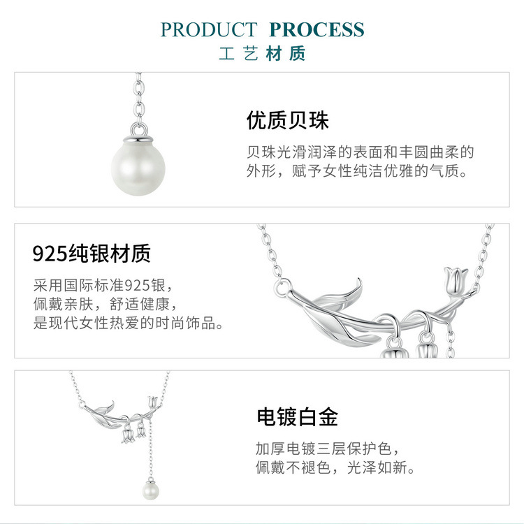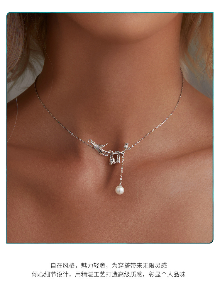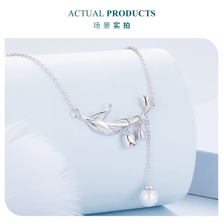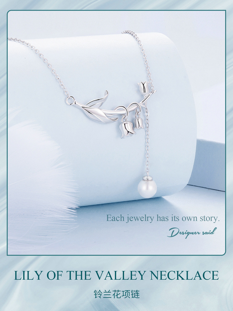 【情人节送礼❗️寓意幸福归来】新款小清新铃兰花贝珠项链女 小众设计花朵s925纯银锁骨链。jc