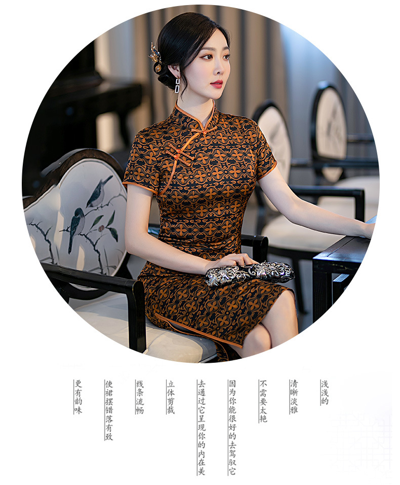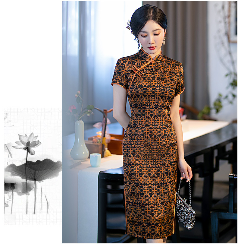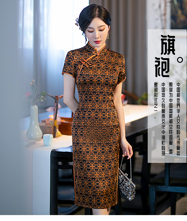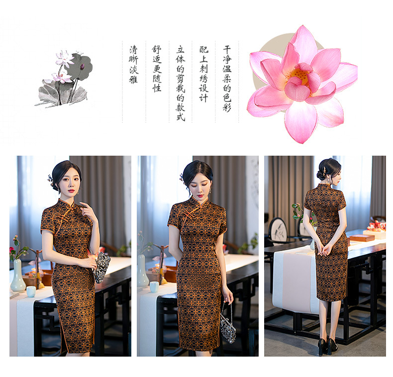 GSJ-2018春夏新款中长短袖改良版复古显瘦气质日常旗袍裙