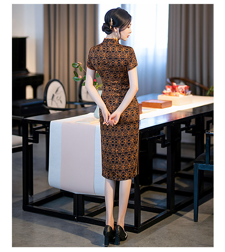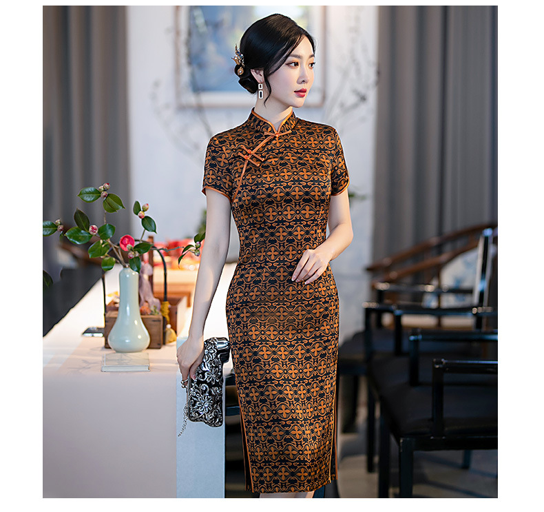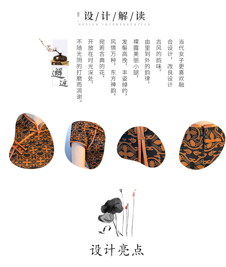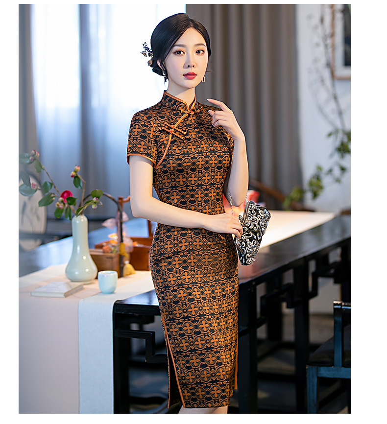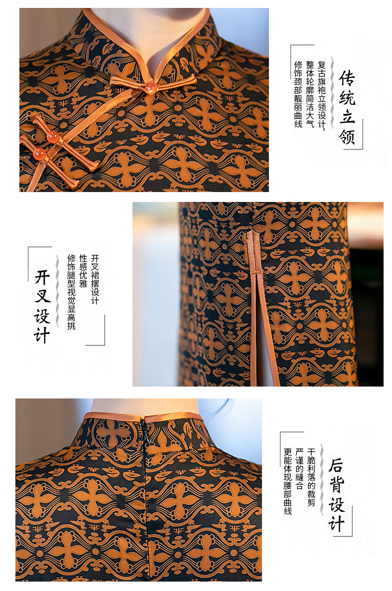 GSJ-2018春夏新款中长短袖改良版复古显瘦气质日常旗袍裙