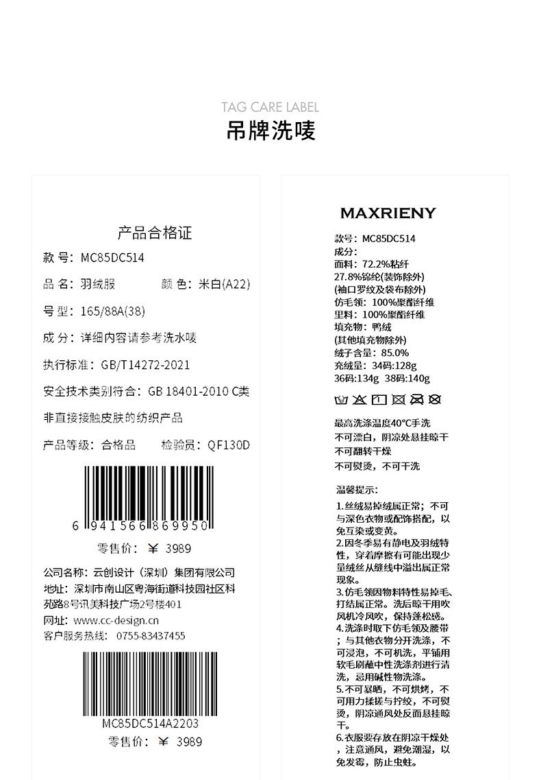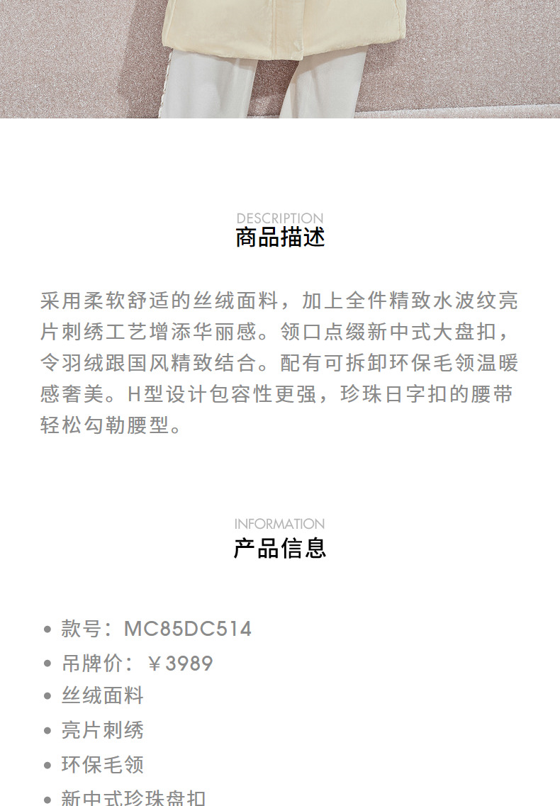 MAXRIENY【时髦暖冬-商场同款】复古新中式亮片刺绣丝绒羽绒服女(货号:MC85DC514)