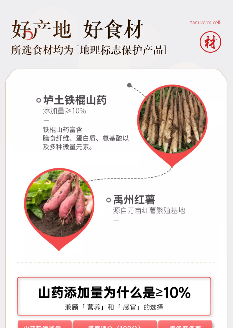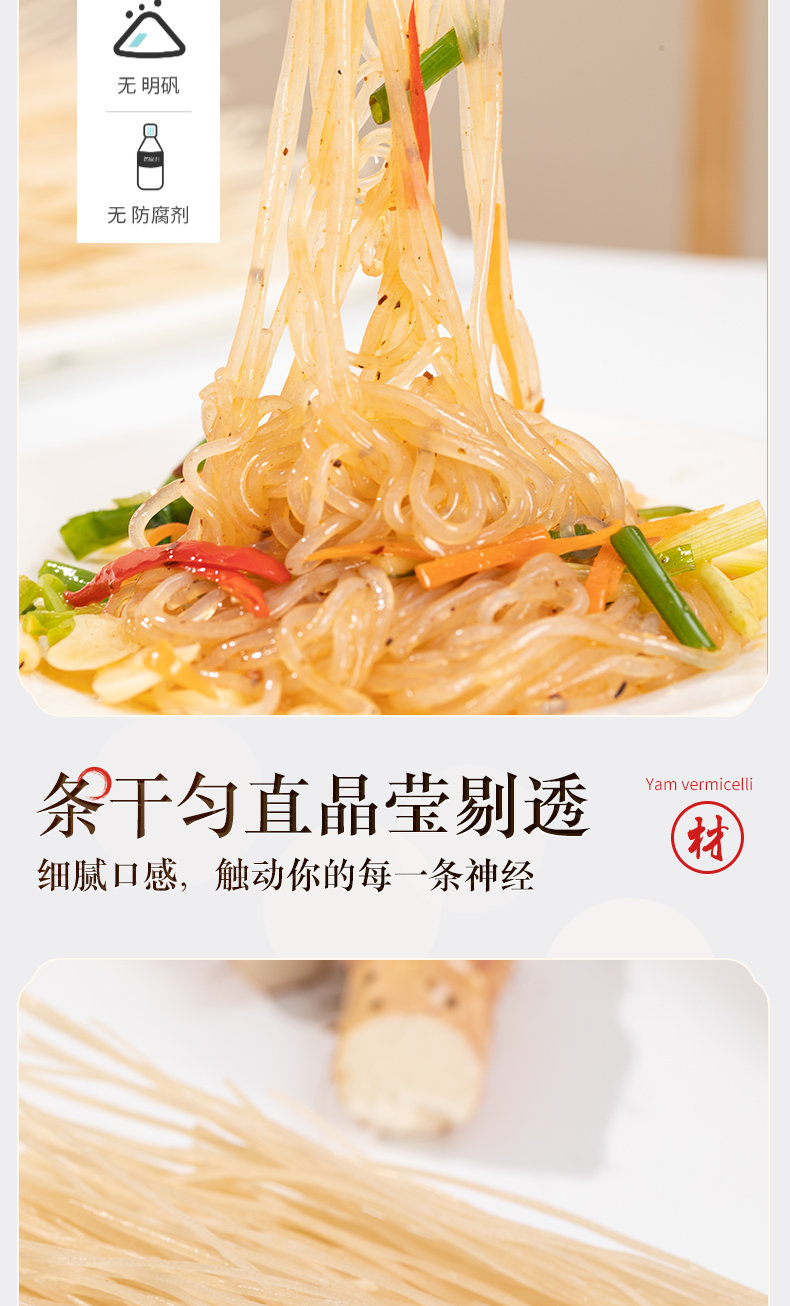 【多包装再赠送】传统工艺 Q滑筋道 | 土拔香温县铁棍山药红薯粉条/粉丝 山药粉条 炖煮都可 食材干货 260g/袋*2袋