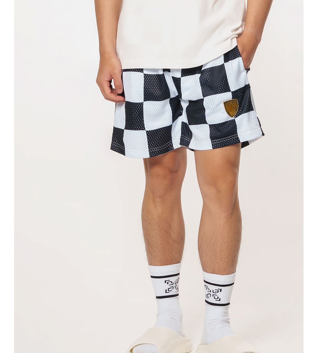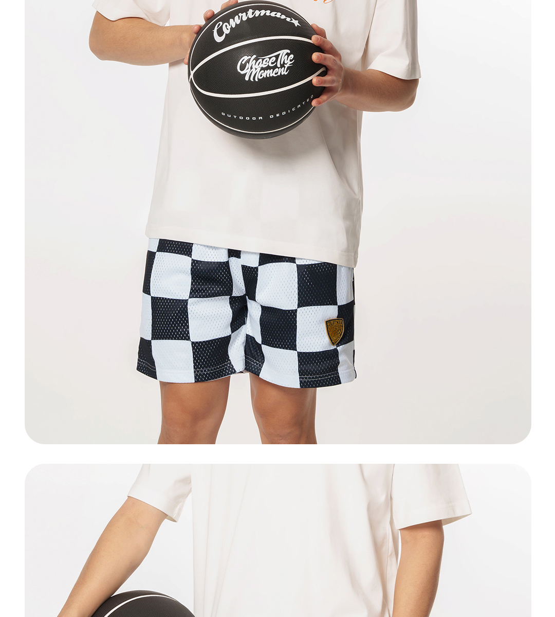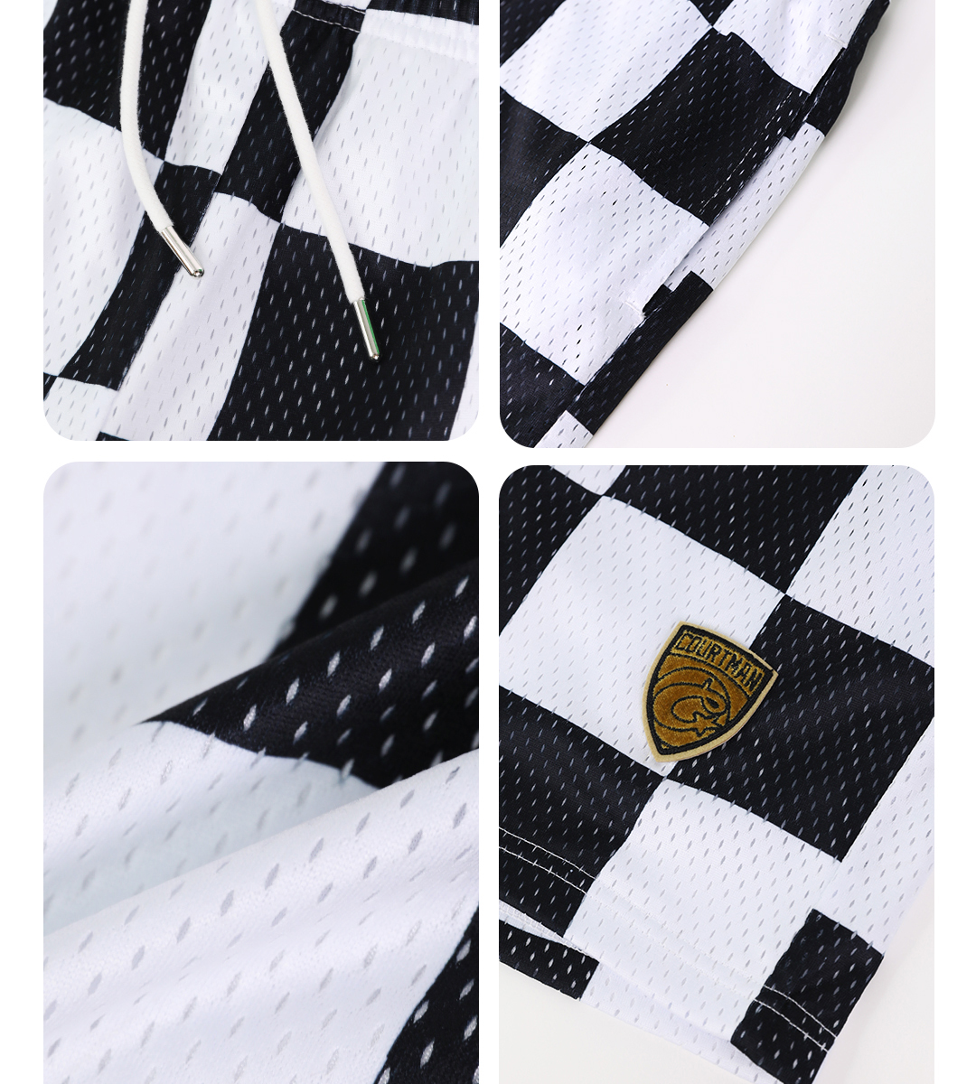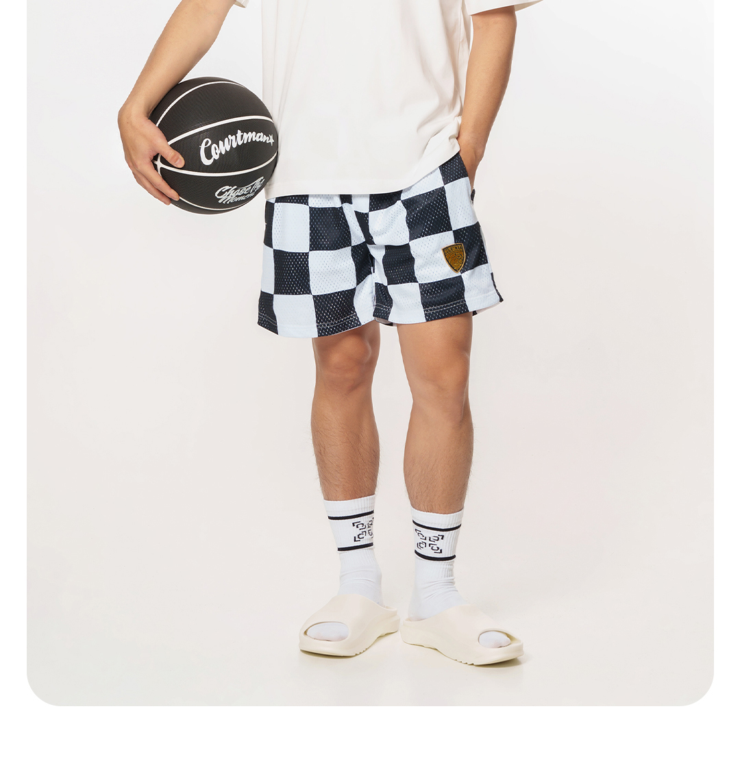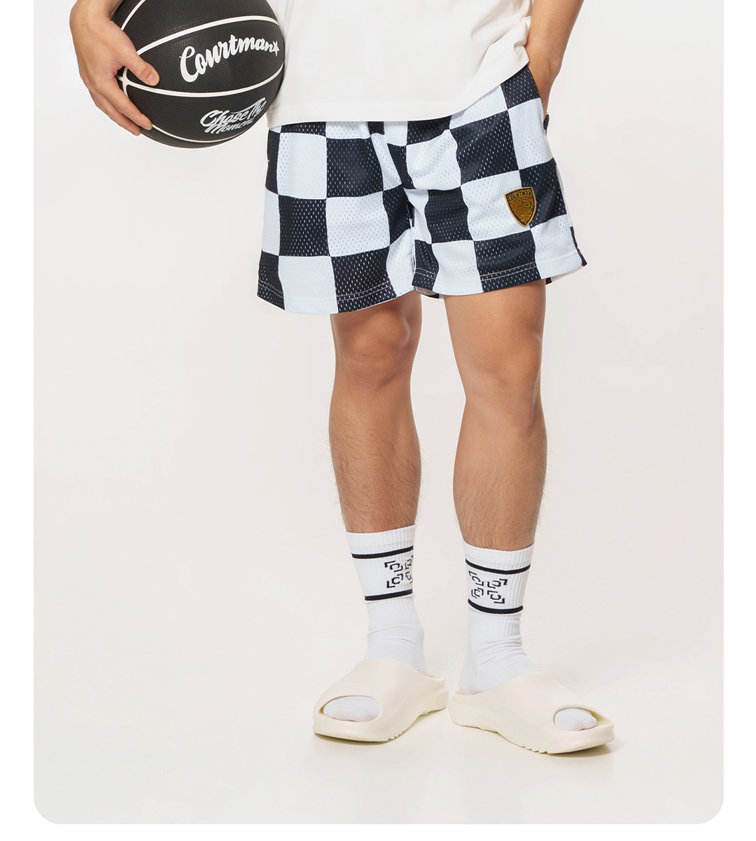 COURTMAN野球帝黑白格美式篮球短裤透气训练跑步健身运动短裤网眼