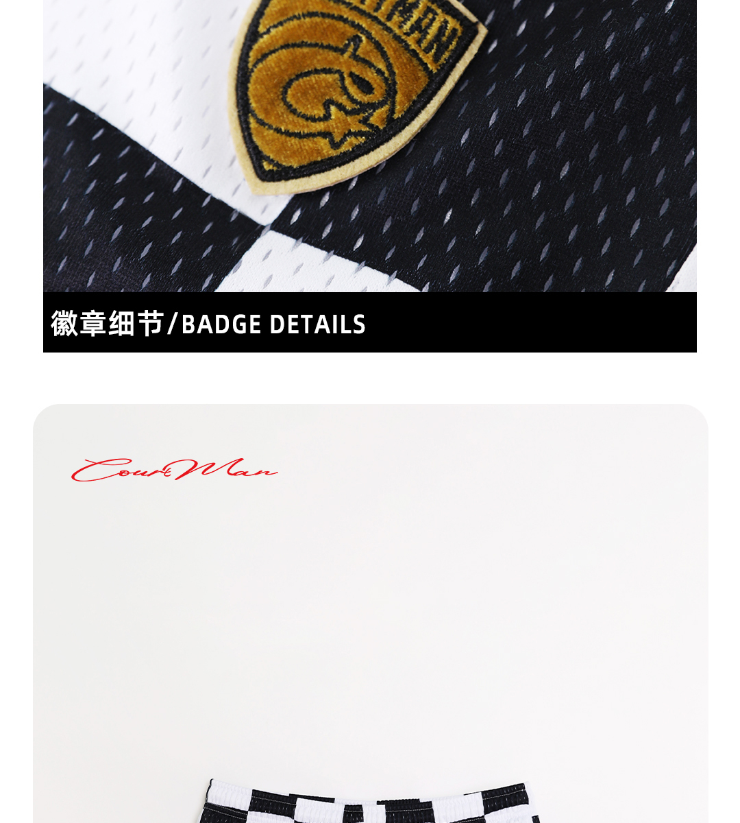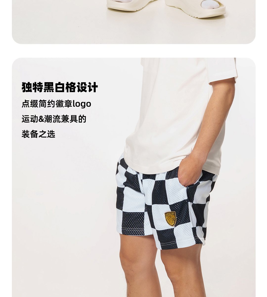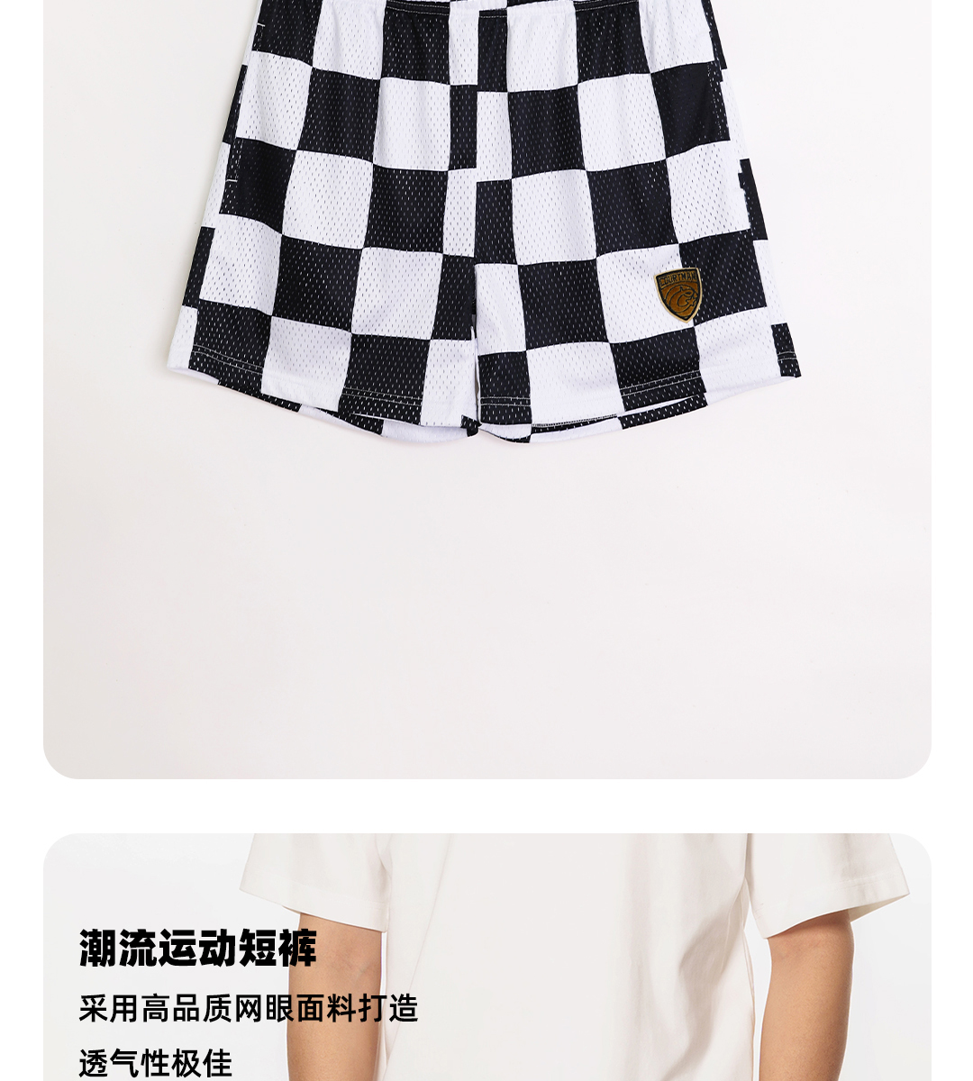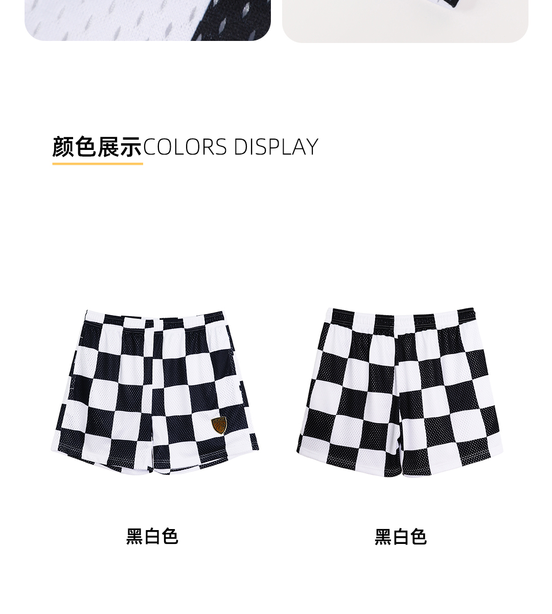 COURTMAN野球帝黑白格美式篮球短裤透气训练跑步健身运动短裤网眼