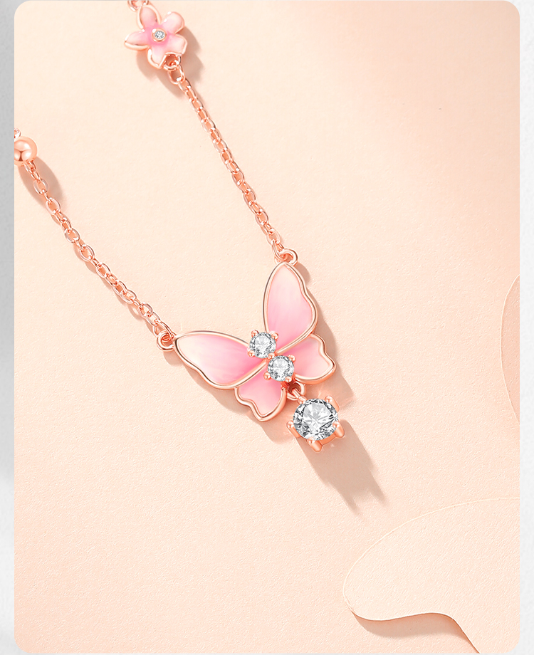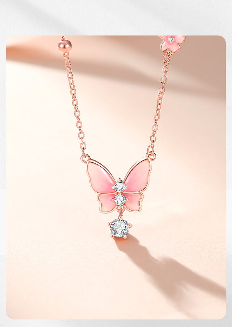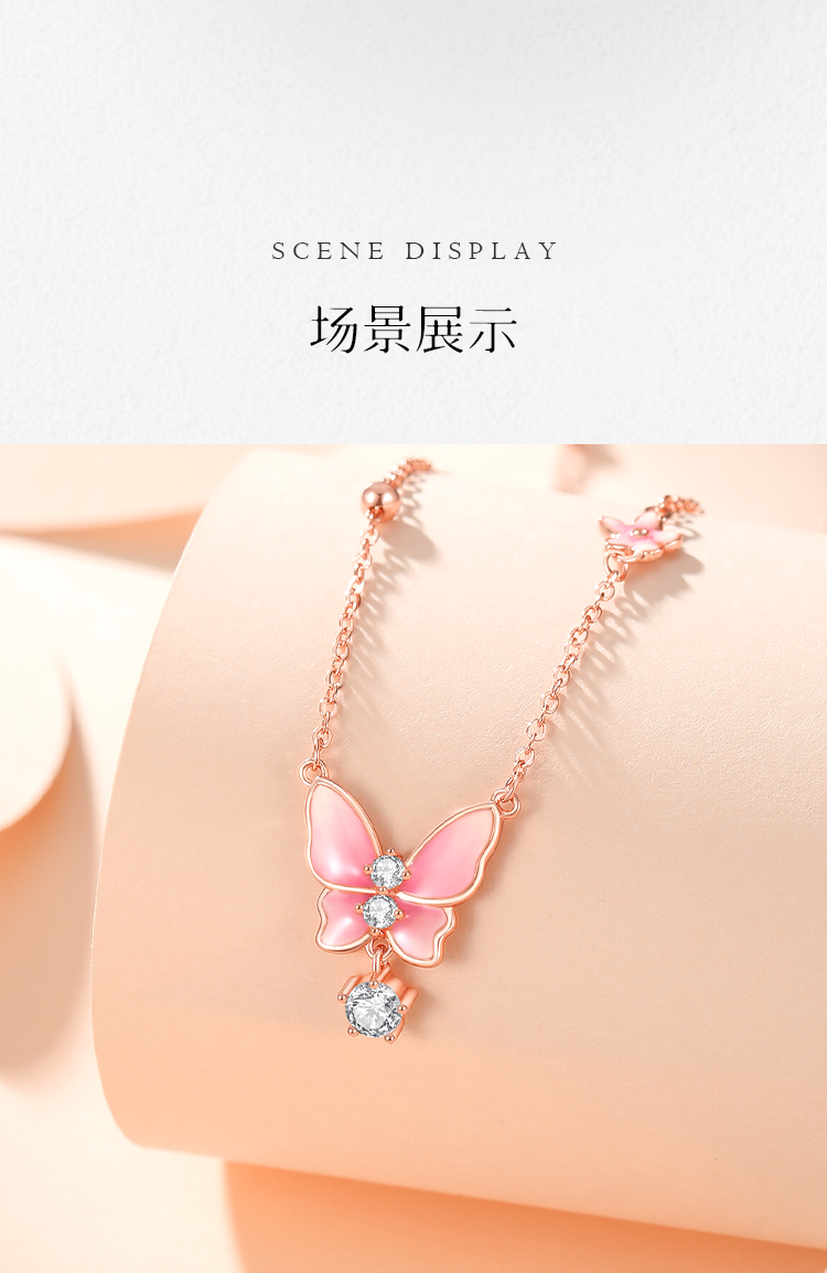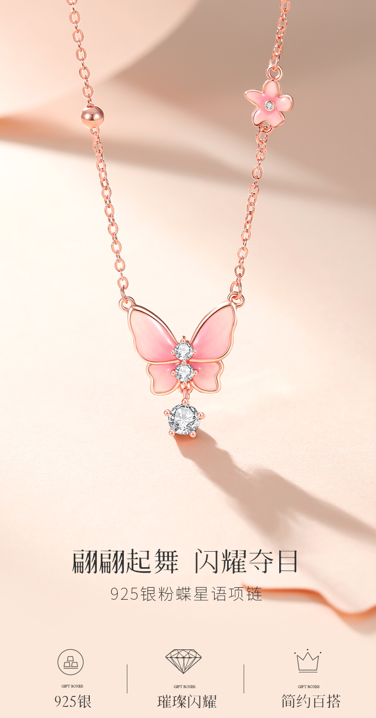 Winy s925银粉蝶星语项链低温珐琅工艺配国检证书送女友闺蜜节日生日礼物