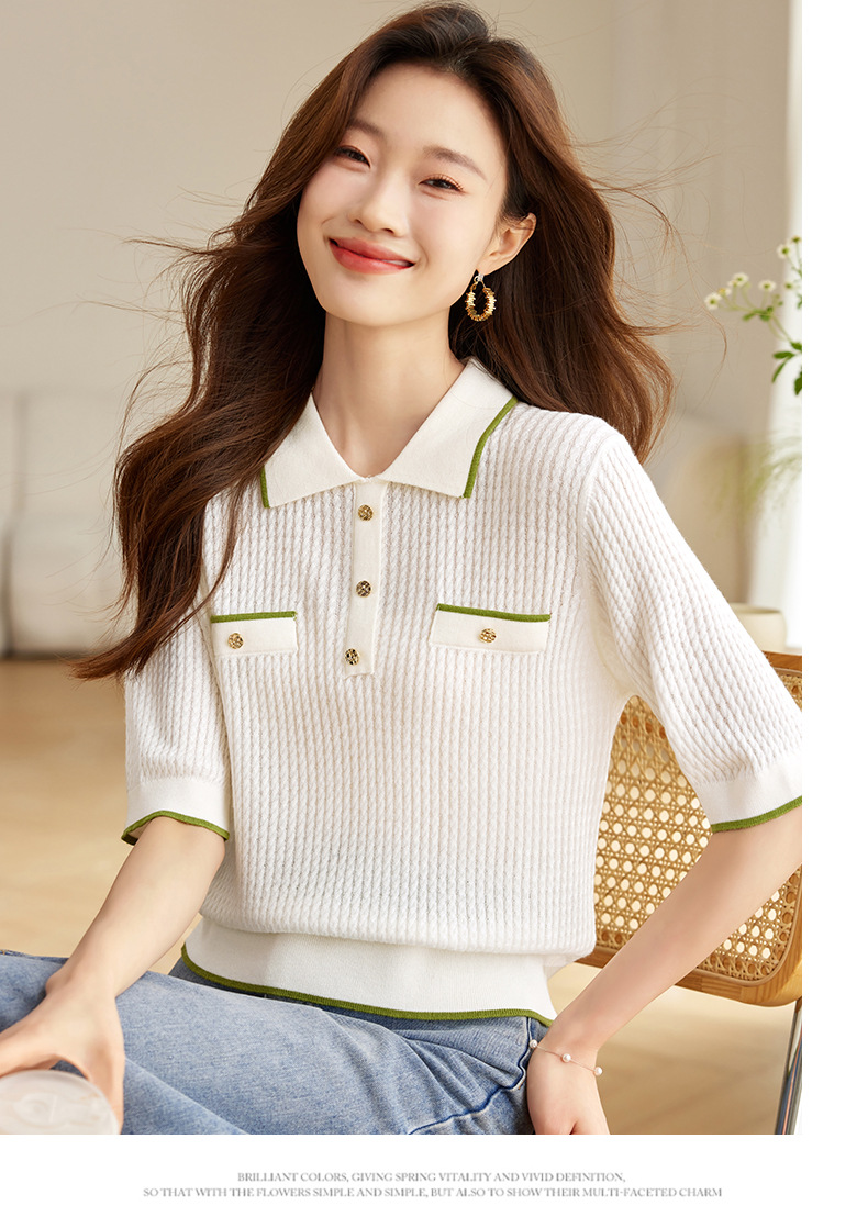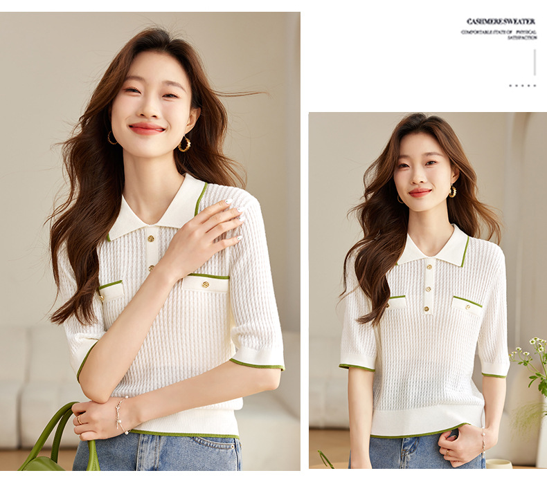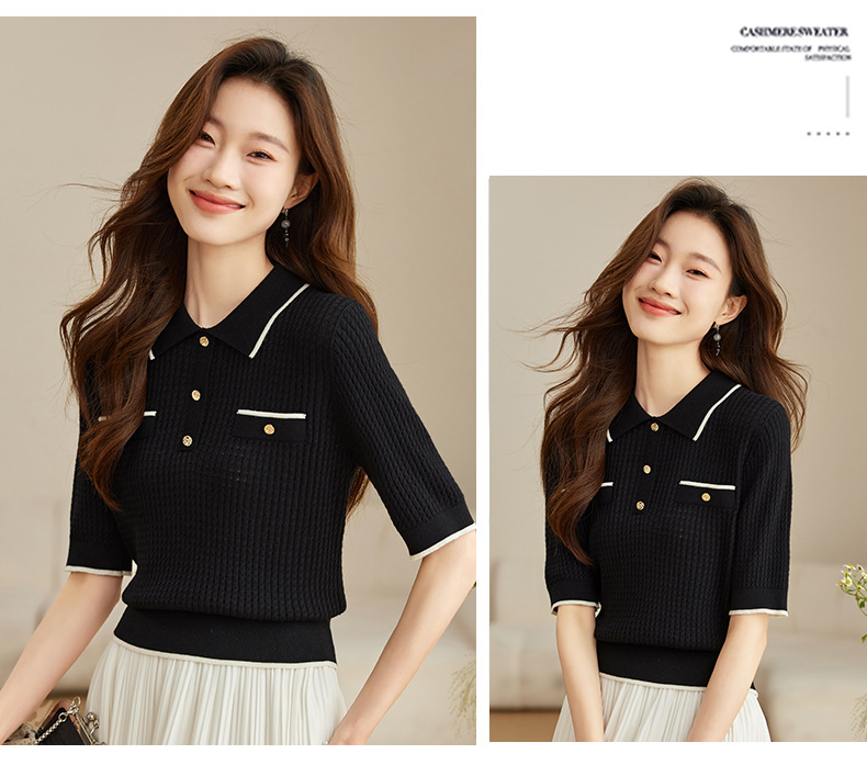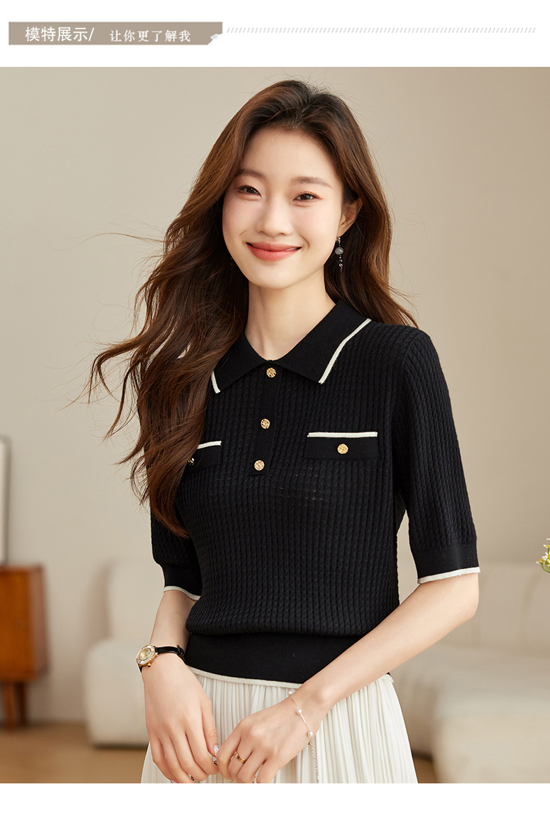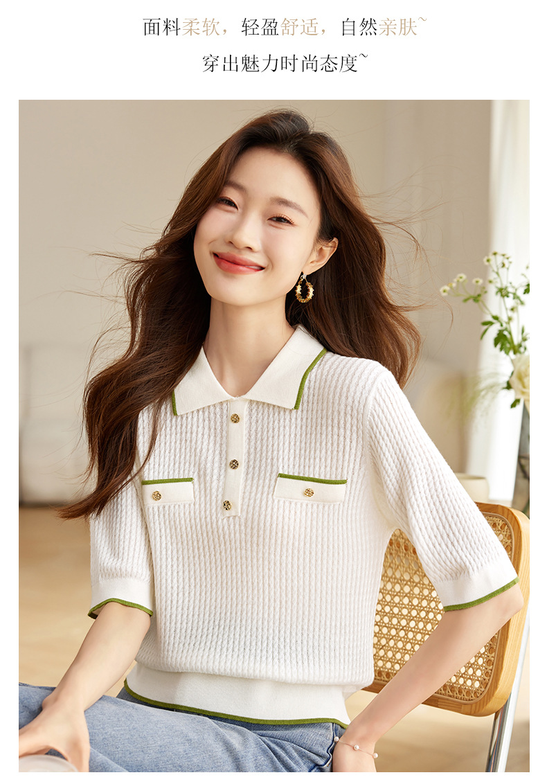 polo领冰丝t恤,小香风中袖天丝针织衫CC-J2532