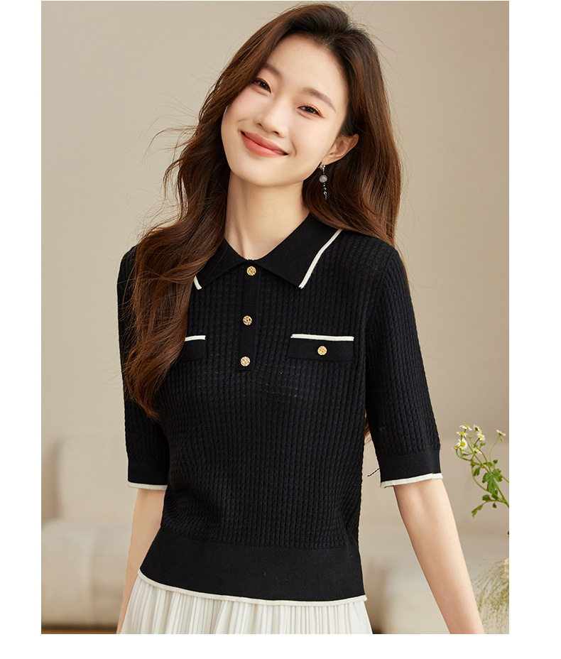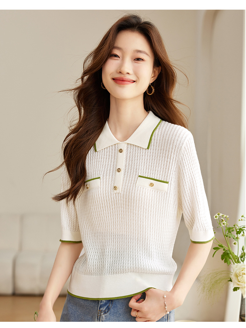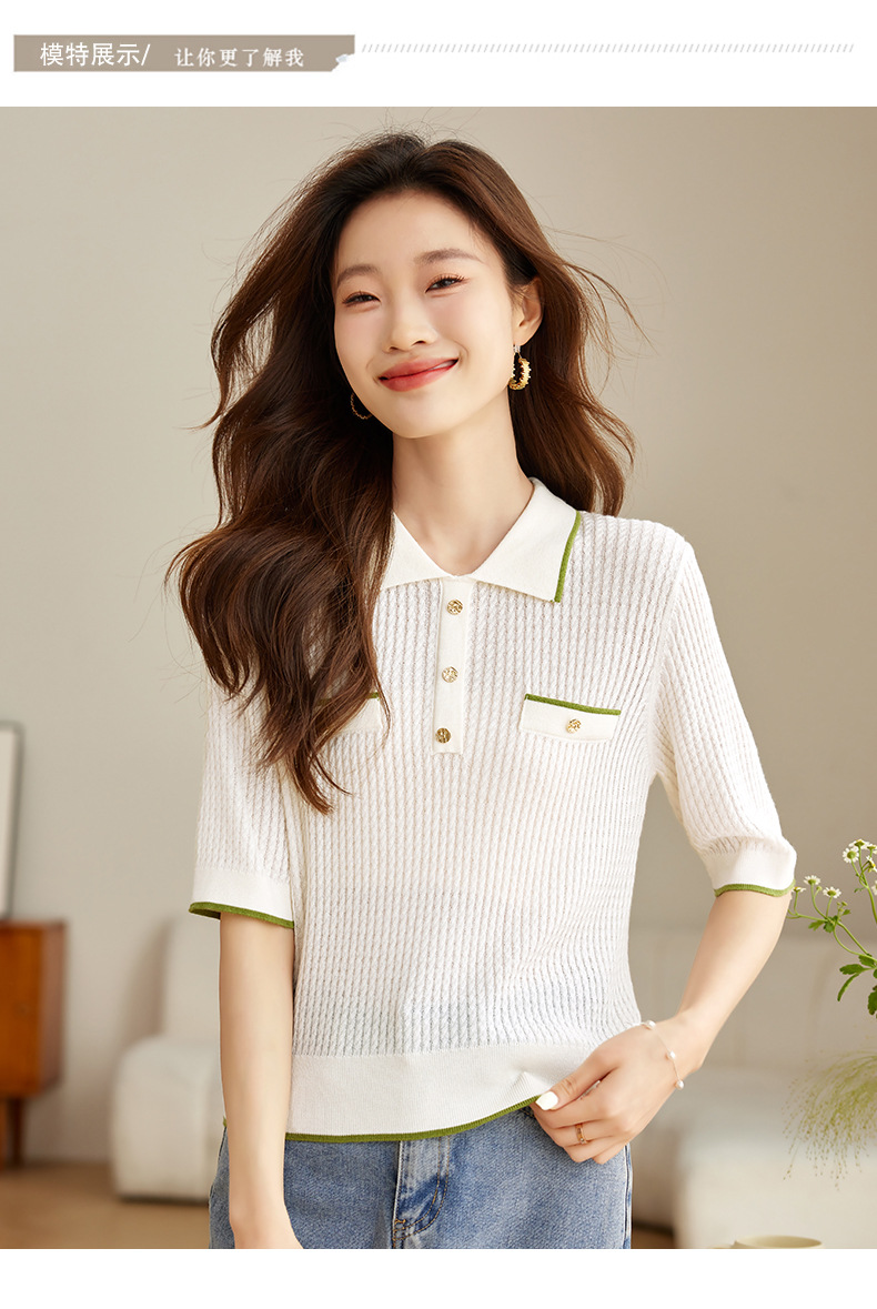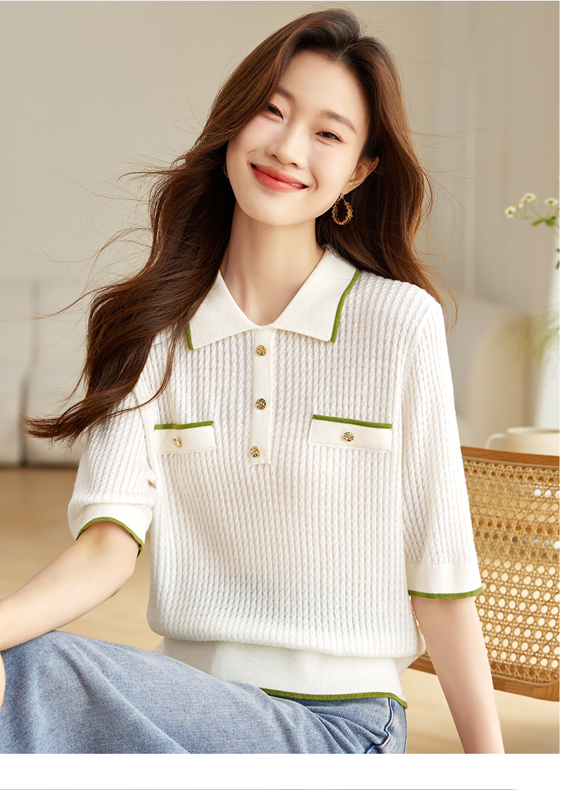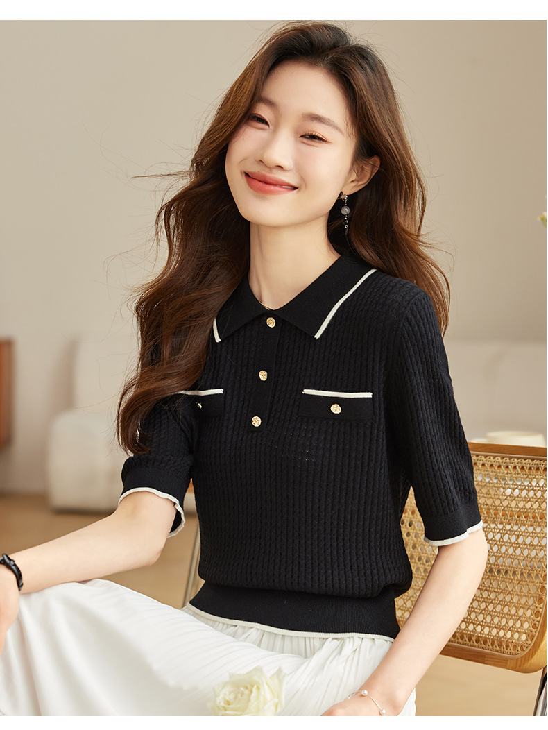polo领冰丝t恤,小香风中袖天丝针织衫CC-J2532