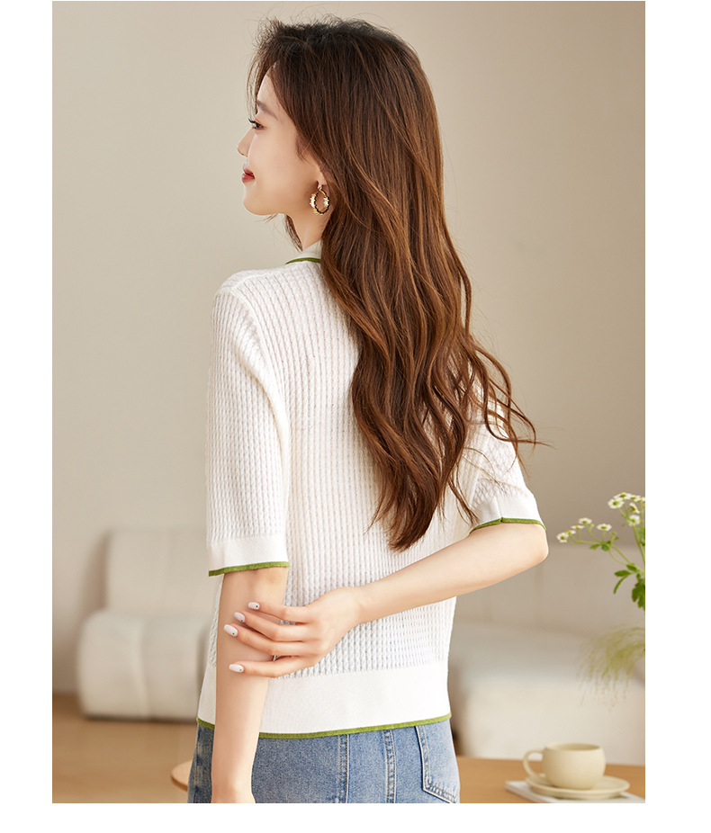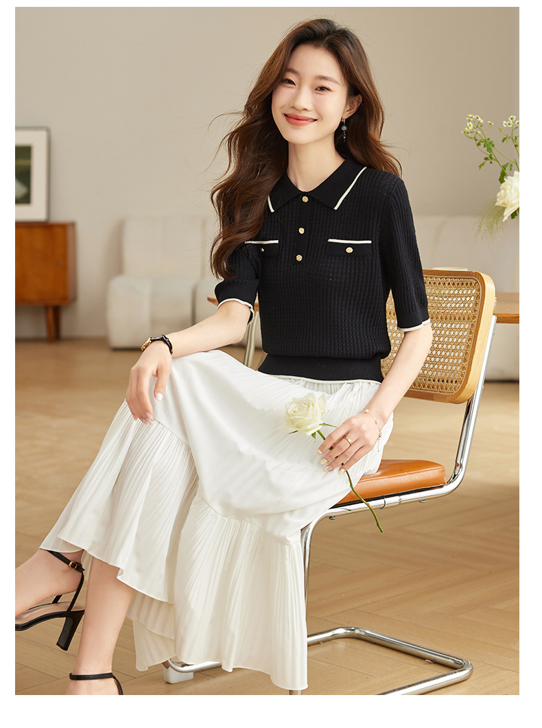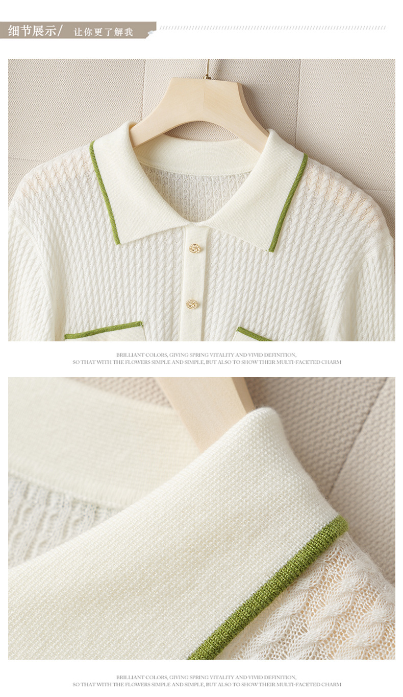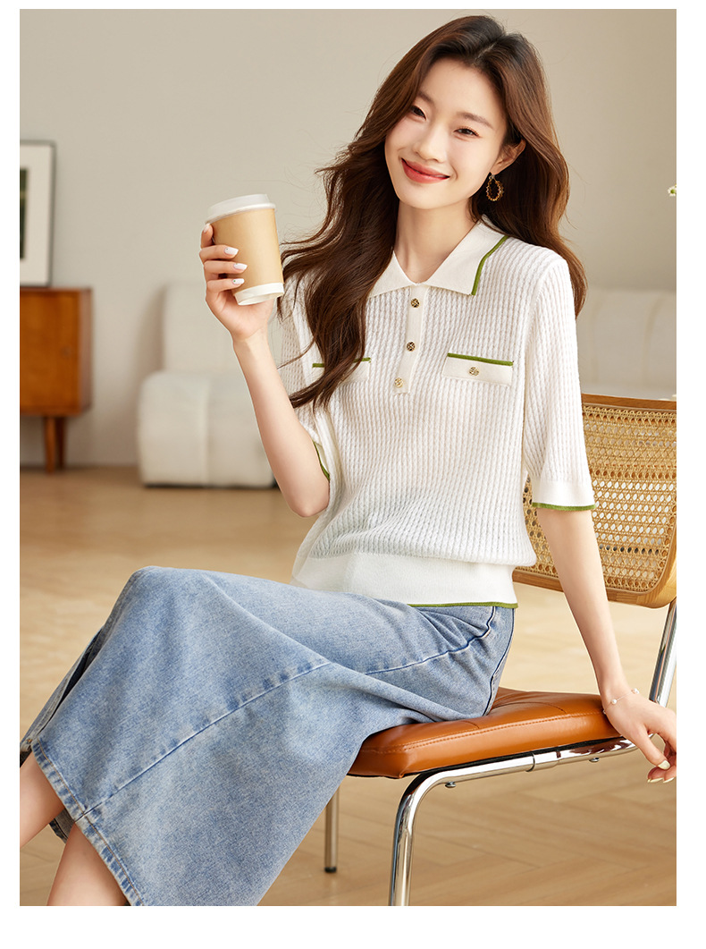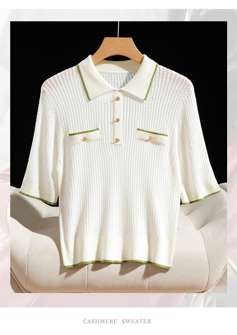 polo领冰丝t恤,小香风中袖天丝针织衫CC-J2532