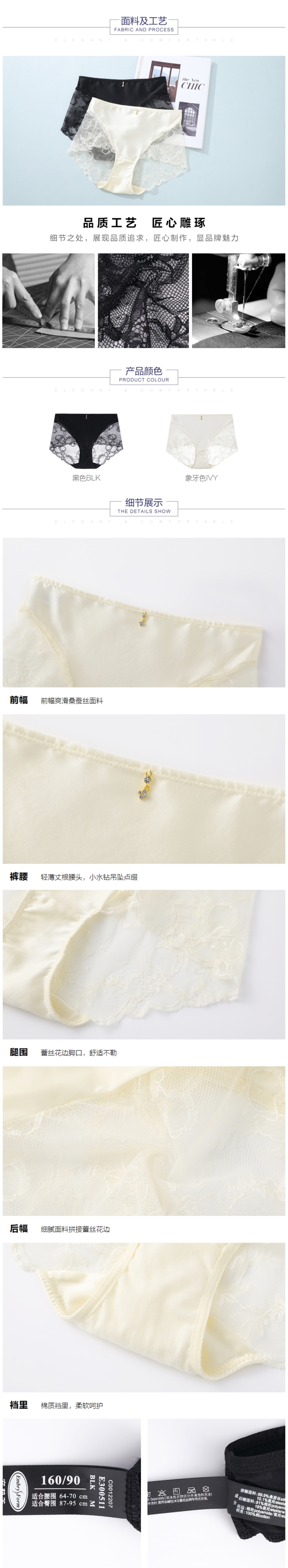 安莉芳新品薄款桑蚕丝纯棉底裆内裤女蕾丝无痕低腰平角裤E300511