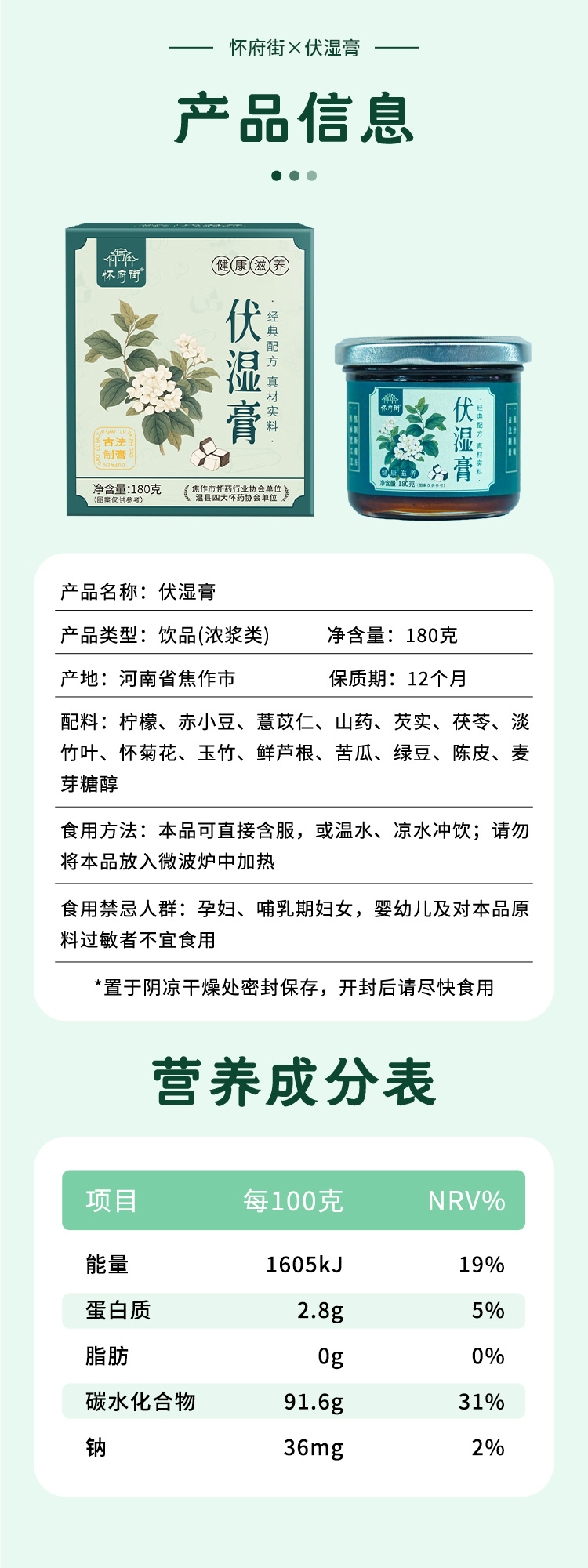 怀府街 | 伏湿膏 草本膏方伏湿有方元气一身轻180g/瓶