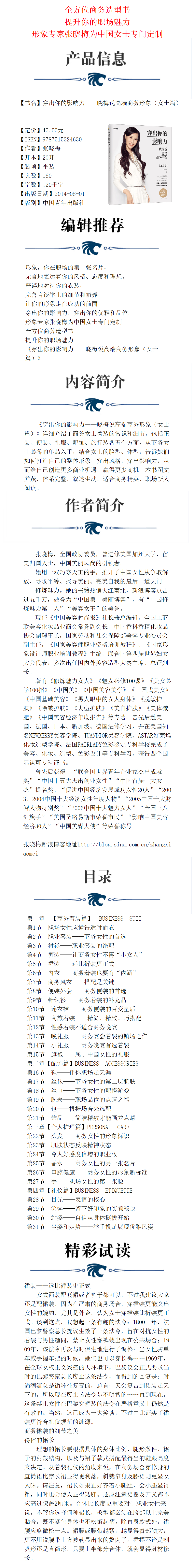 穿出你的影响力——晓梅说高端商务形象(女士篇)张晓梅美育系列 张晓梅著 中国青年出版社
