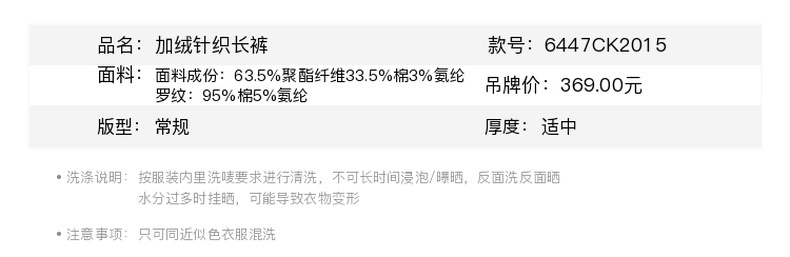卡尔美方寸之间女士冬季新款加绒针织长裤