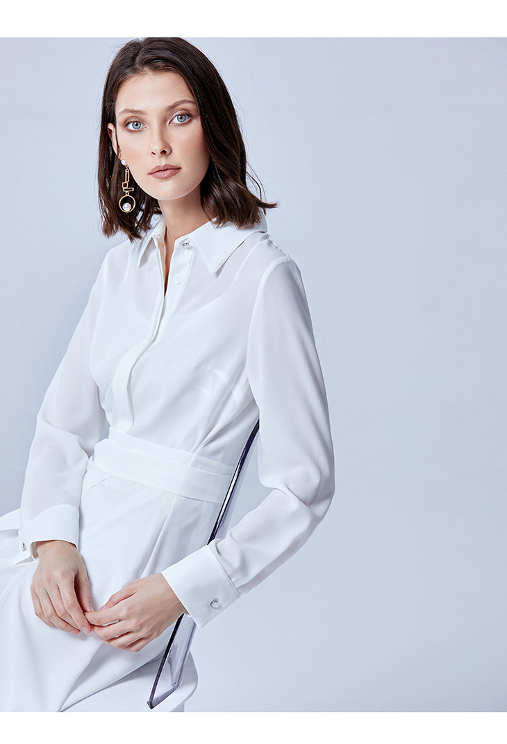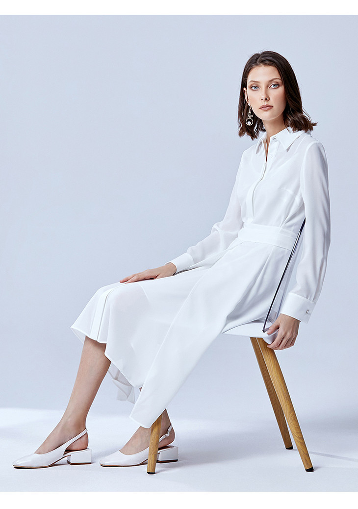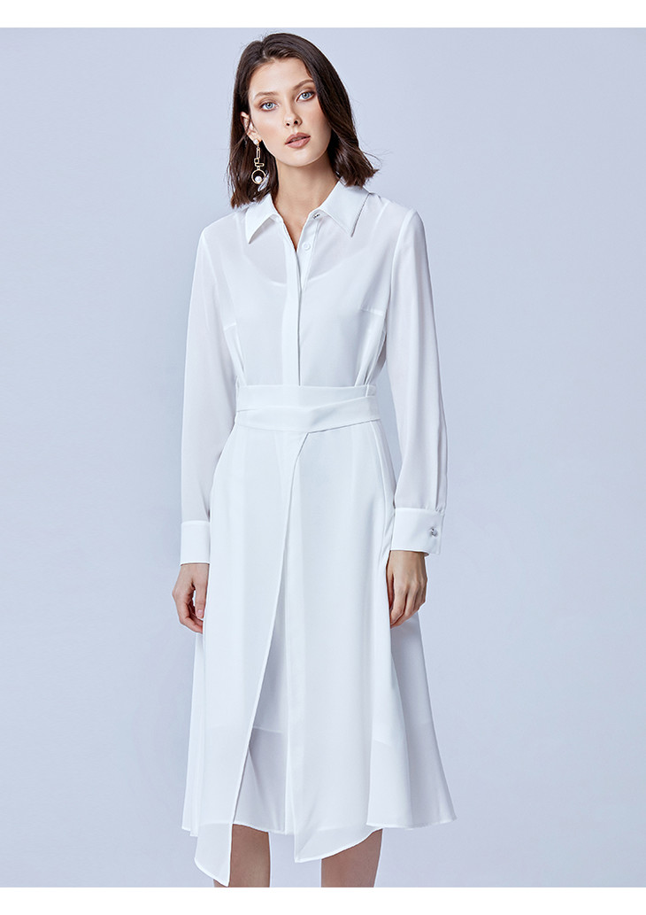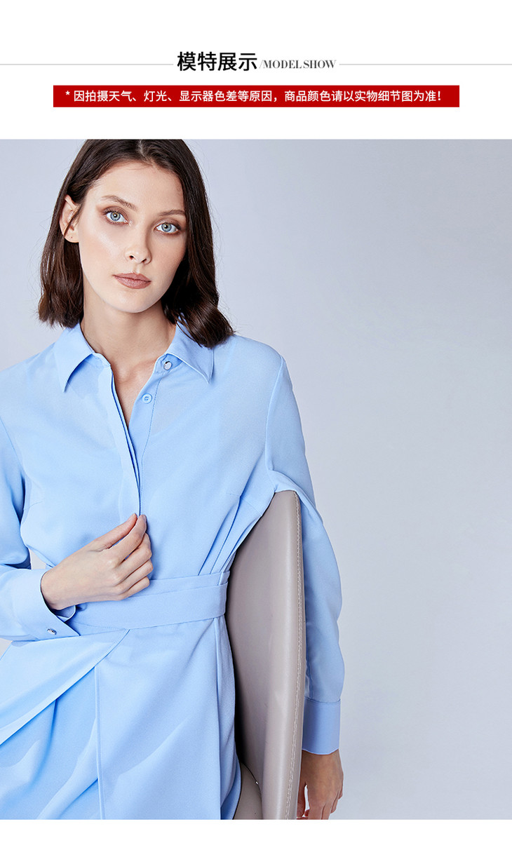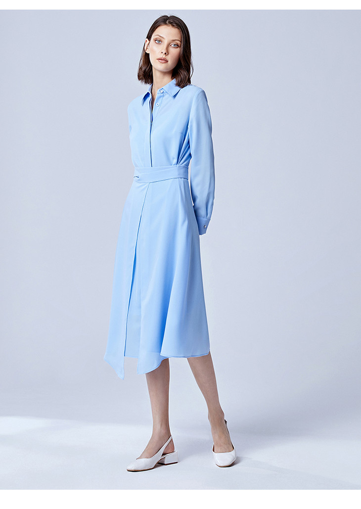 EITIE爱特爱春季新款翻领绣花A字连衣裙中长款女A2007421
