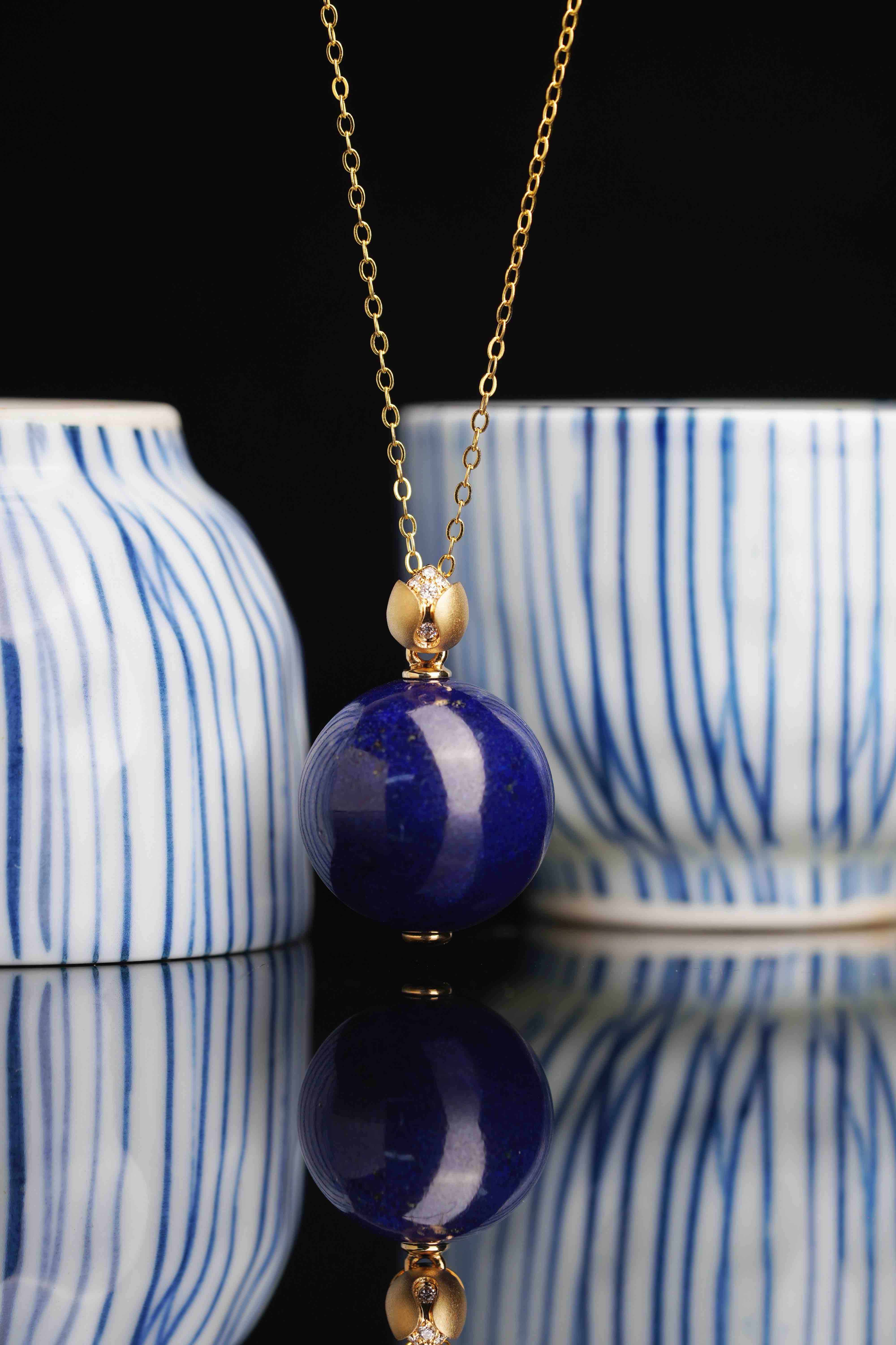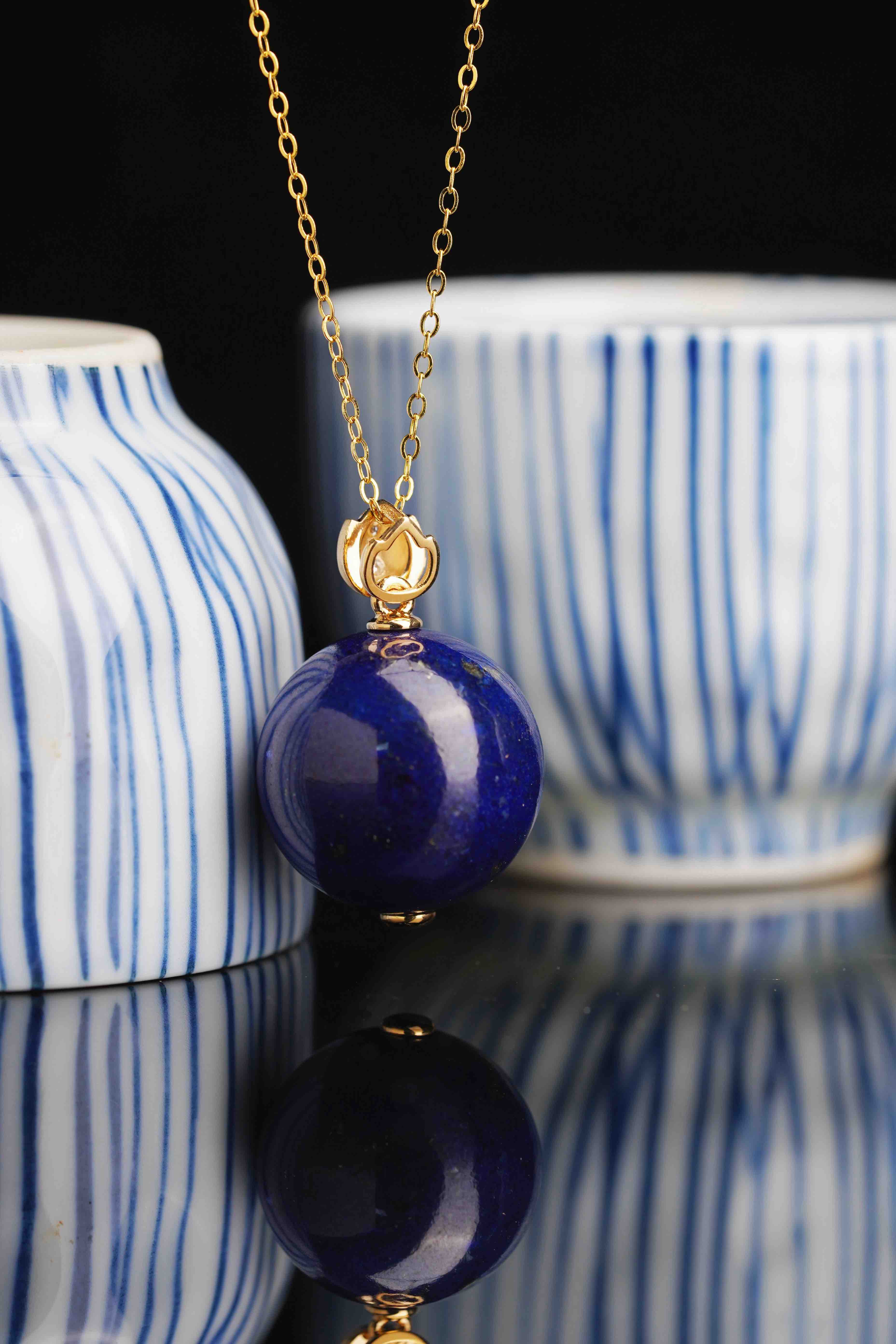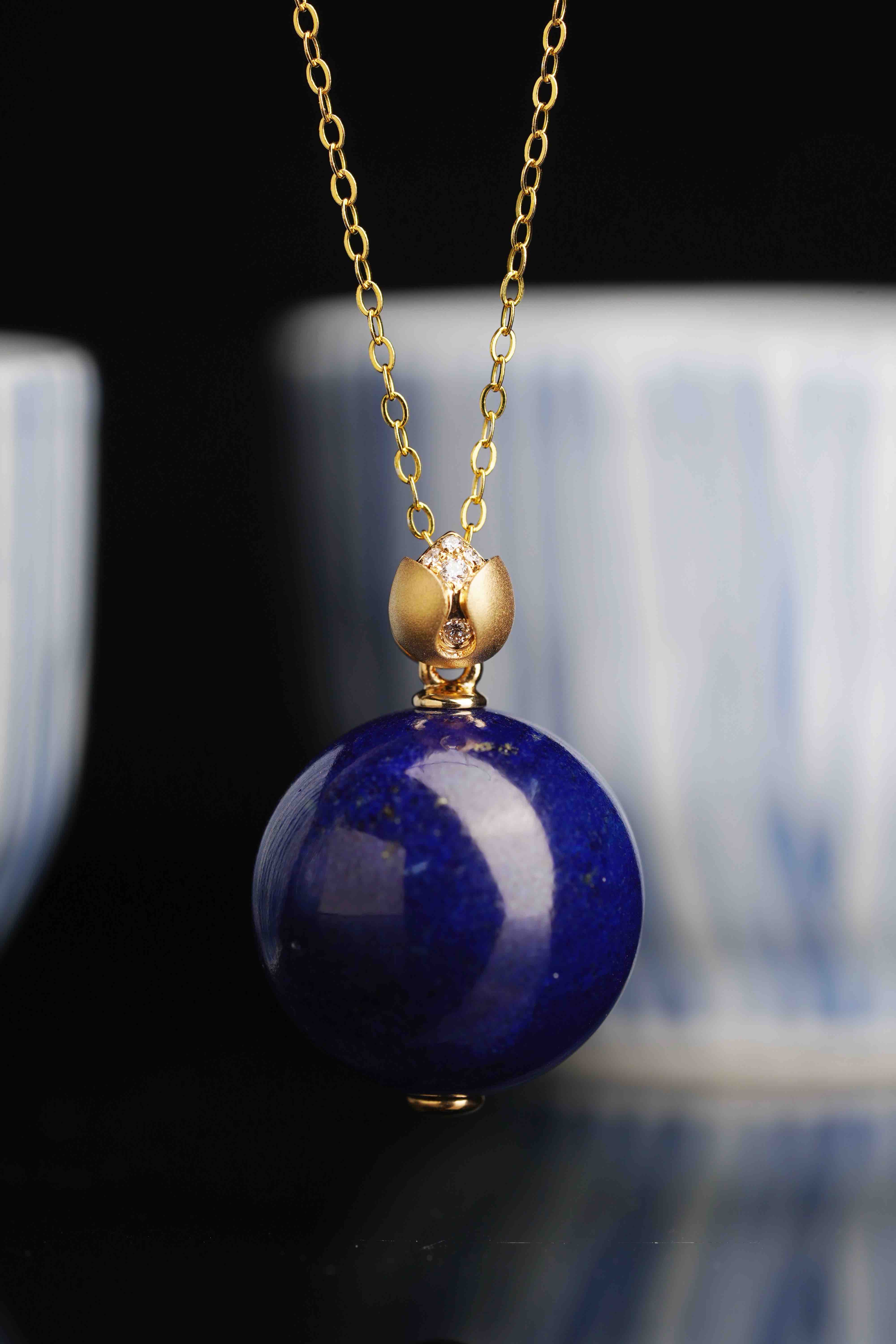 青金圆珠莲花吊坠