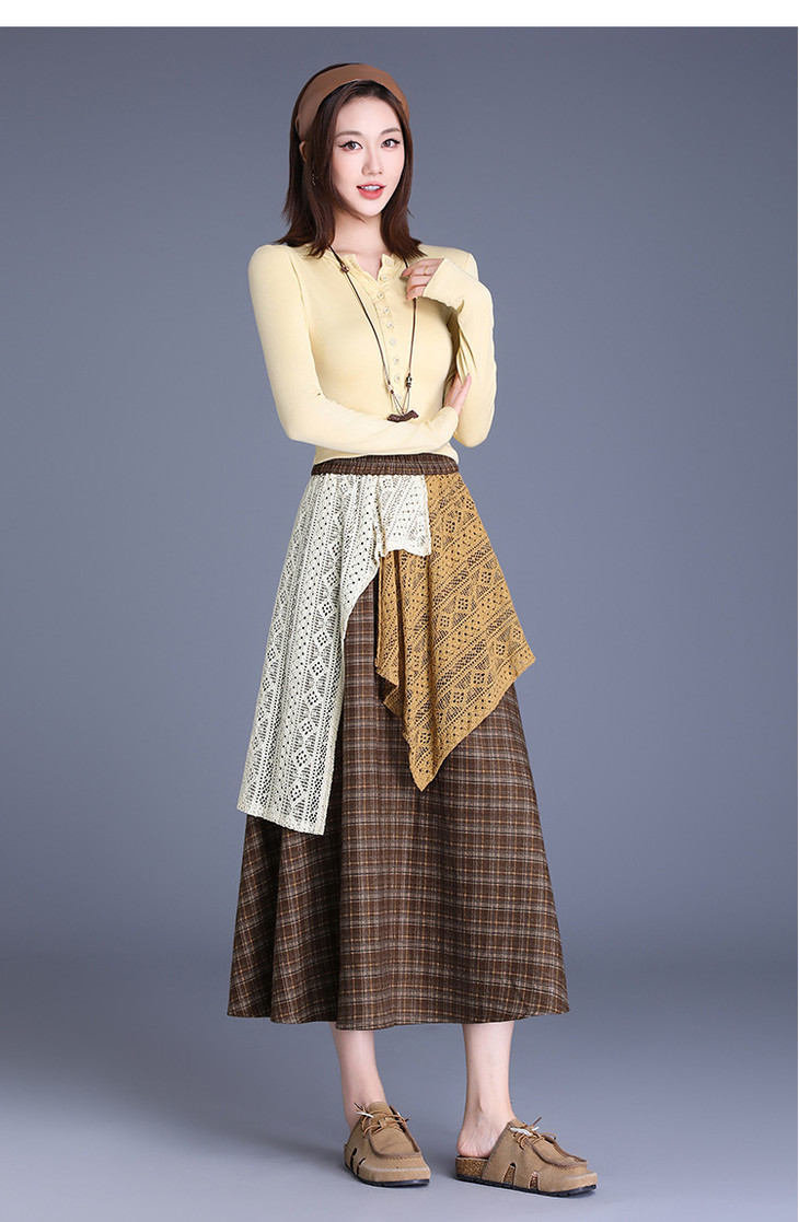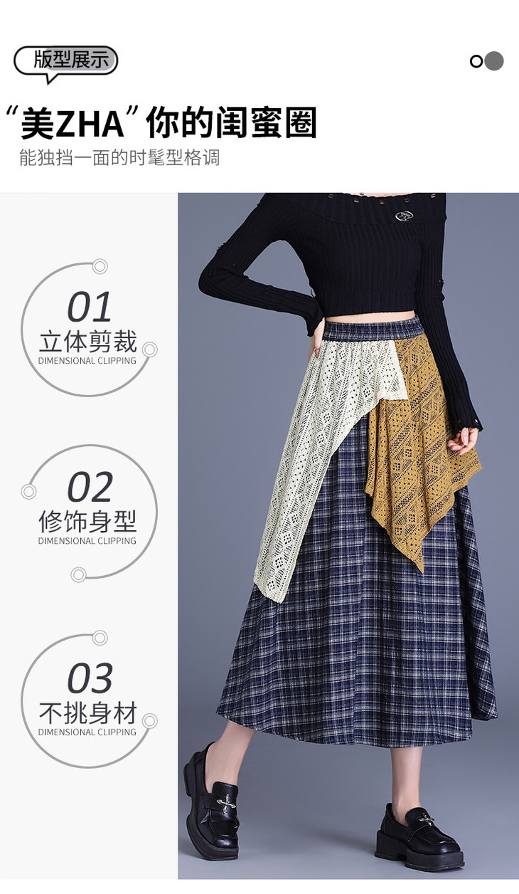 2025秋季新款时髦撞色百褶大摆裙格纹松紧腰MYX2678