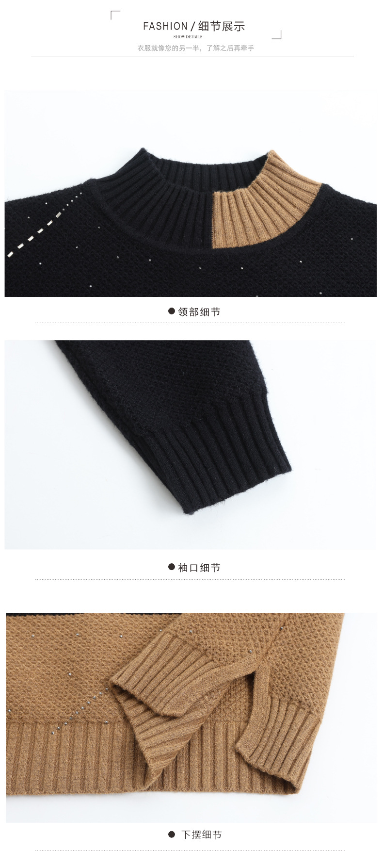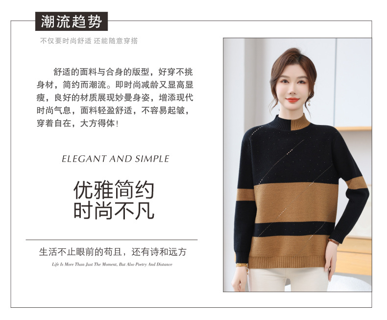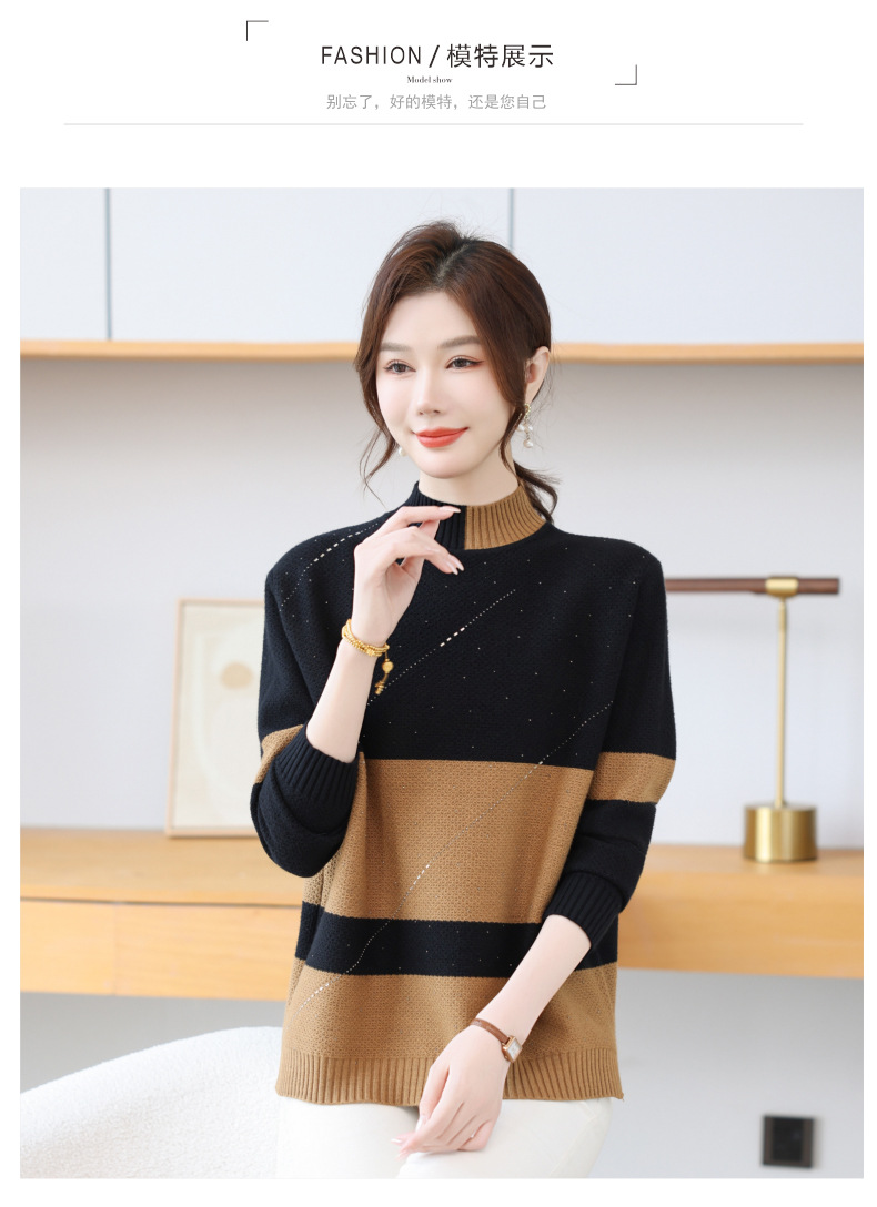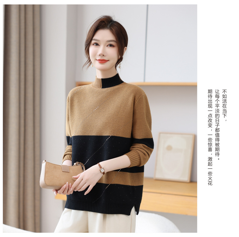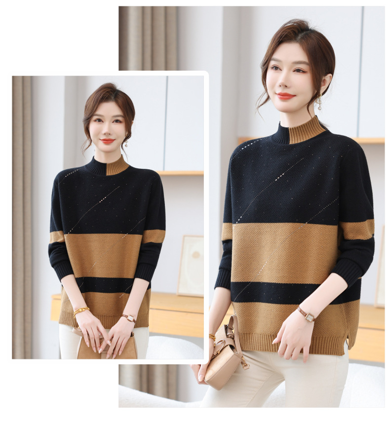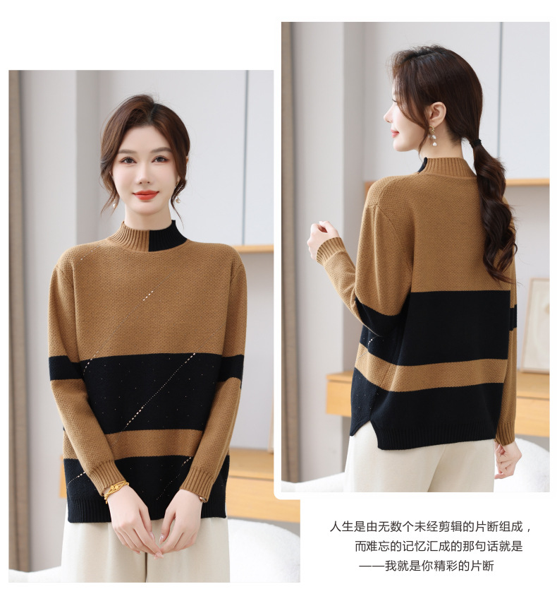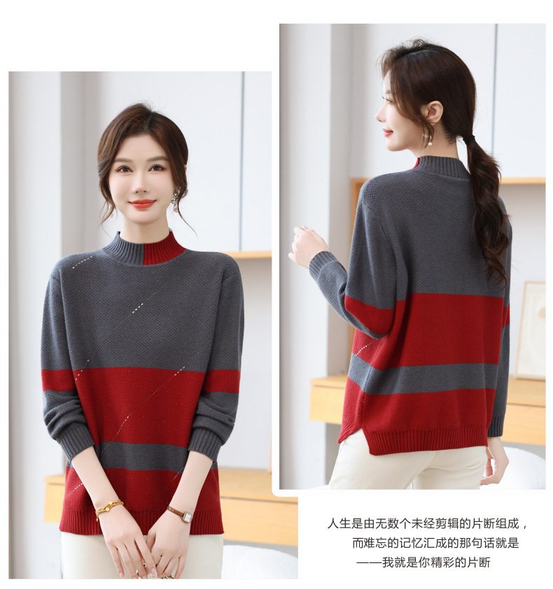 CC 28-1582半高领条纹针织衫撞色宽松显瘦毛衣