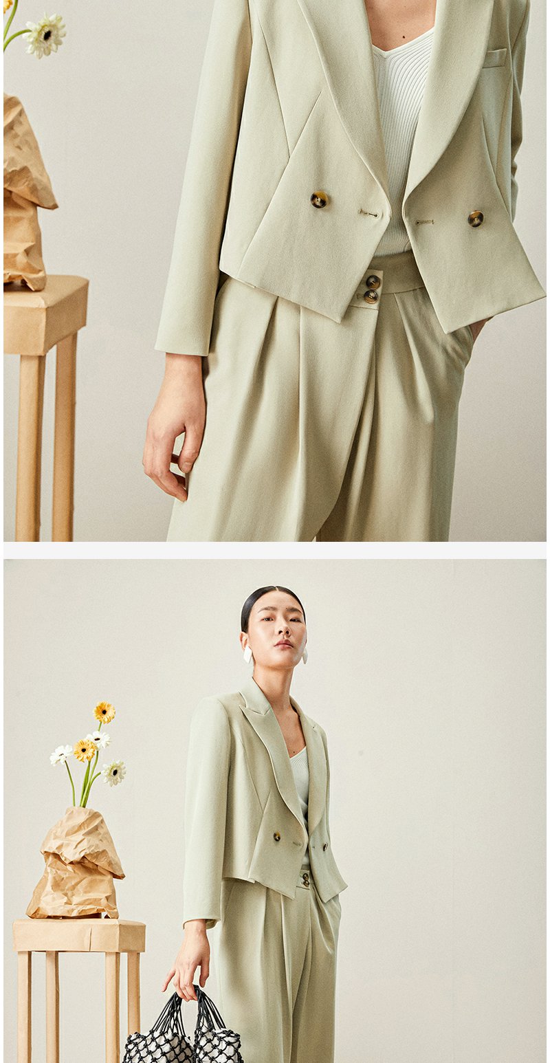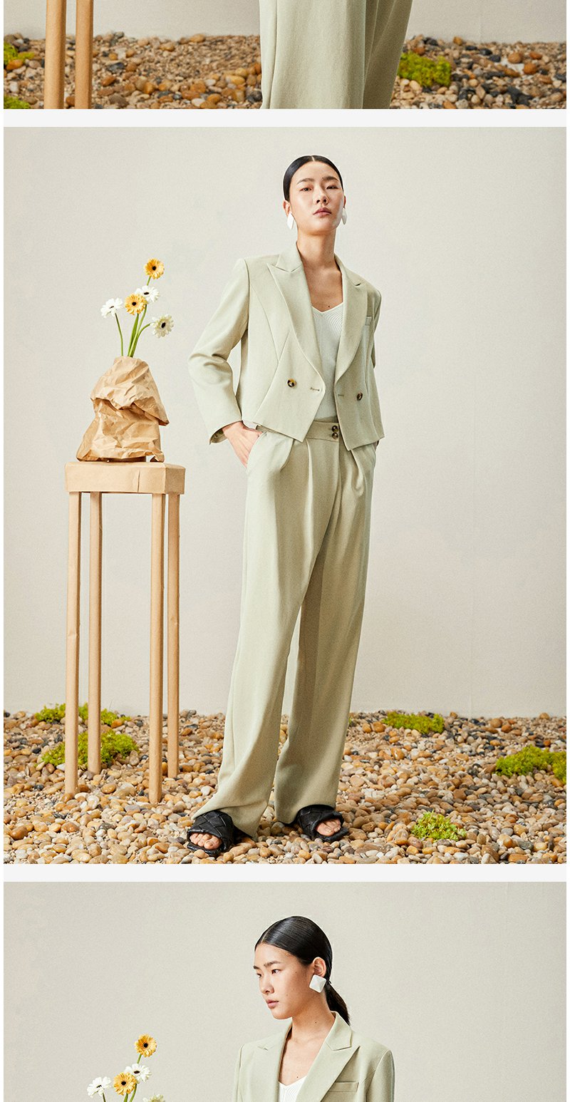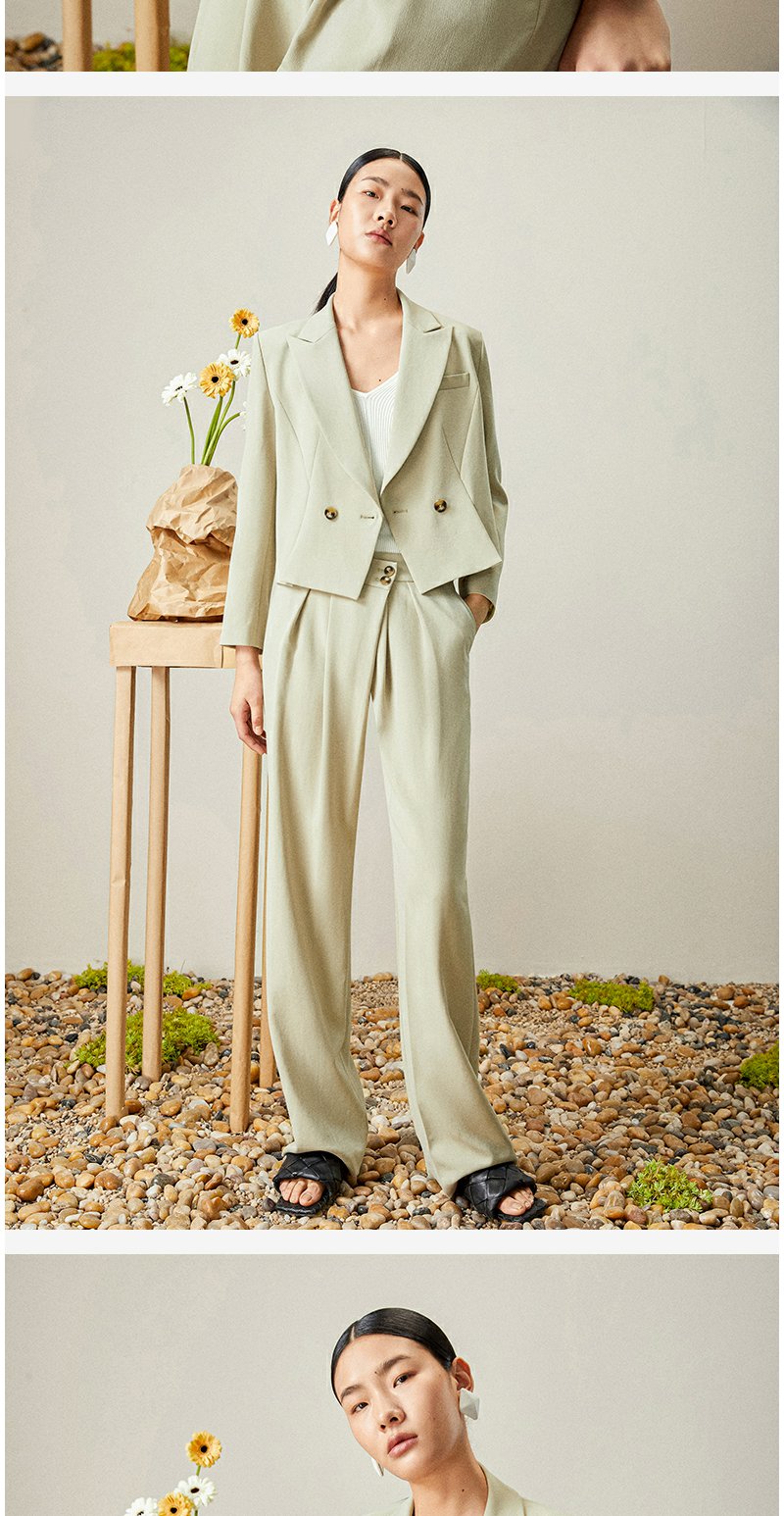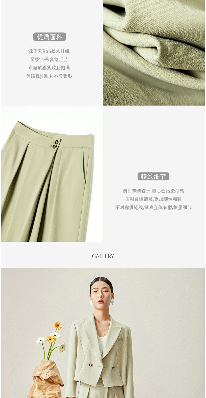 西嘉醋酸特殊分割设计 通勤简约短款小西装女高腰斜门襟褶裥及地西裤