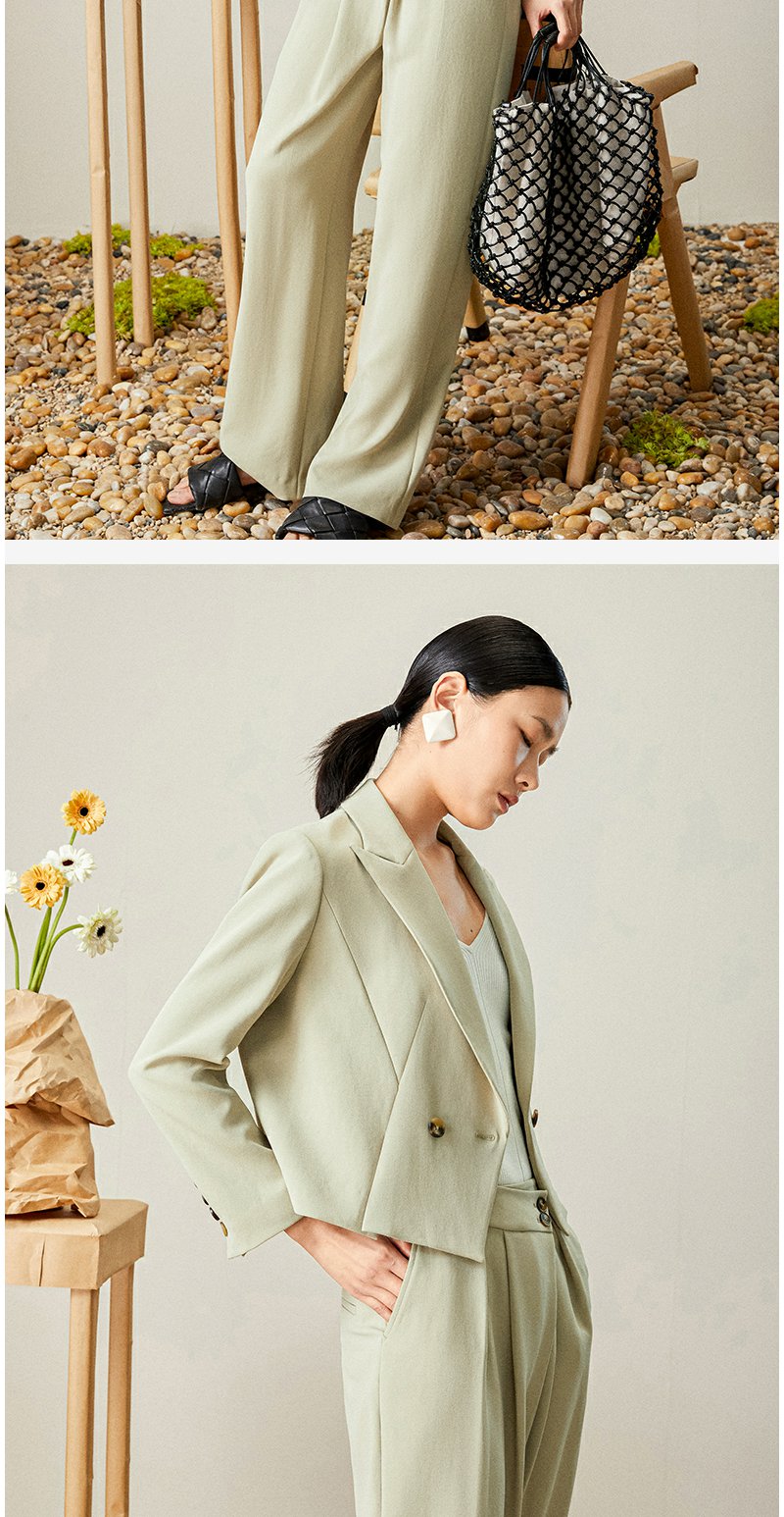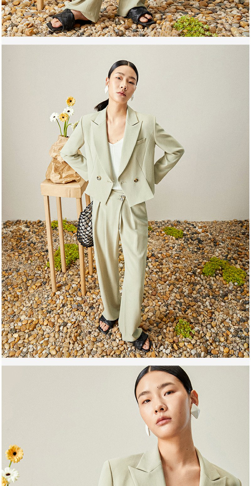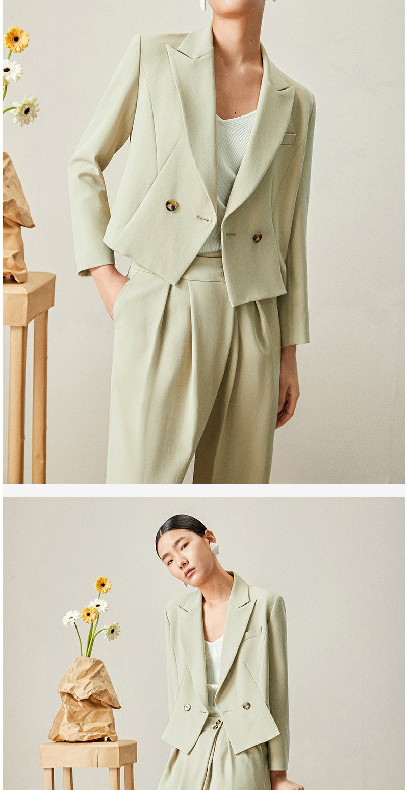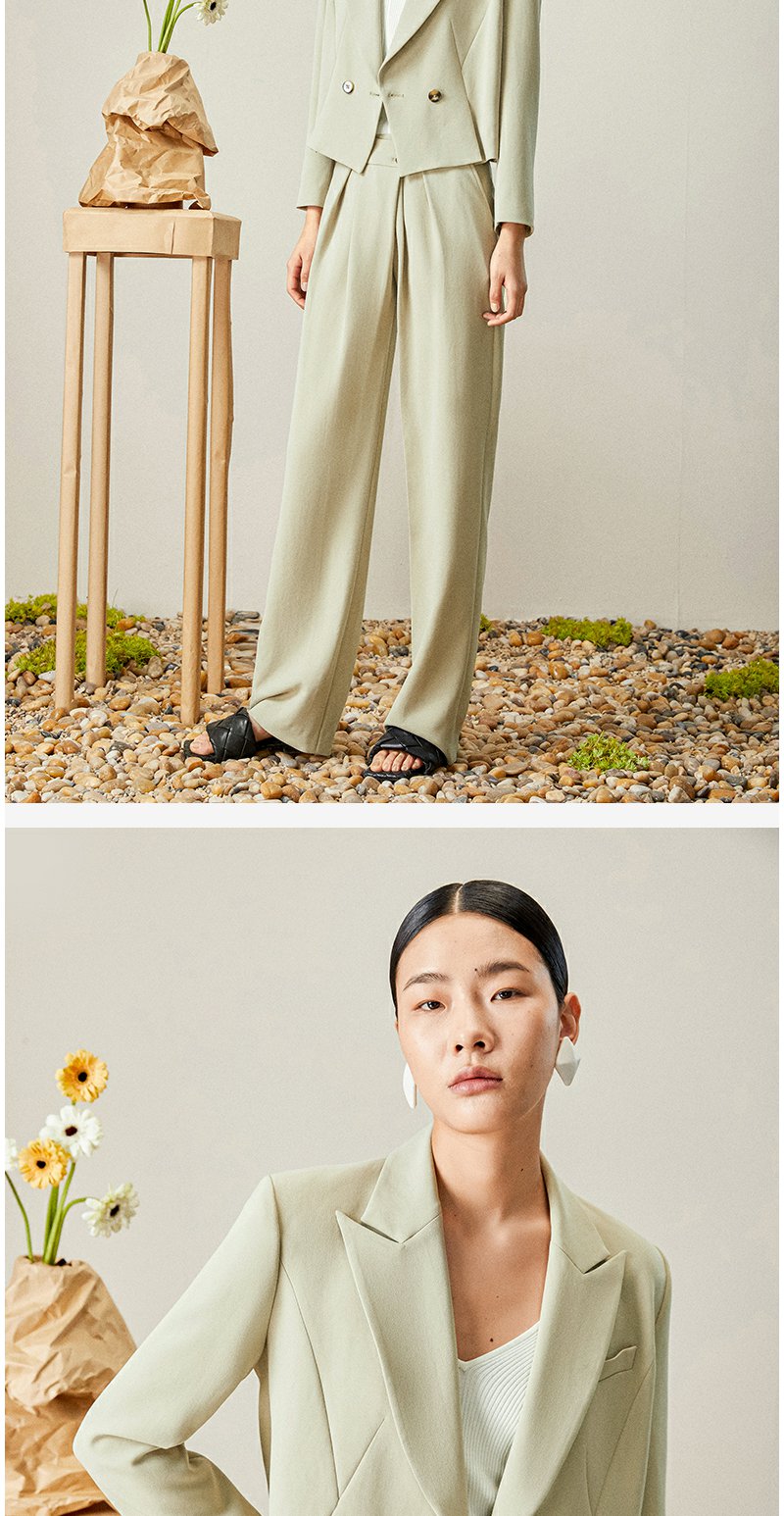 西嘉醋酸特殊分割设计 通勤简约短款小西装女高腰斜门襟褶裥及地西裤