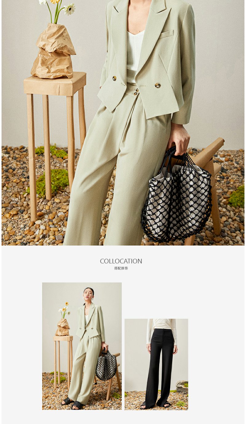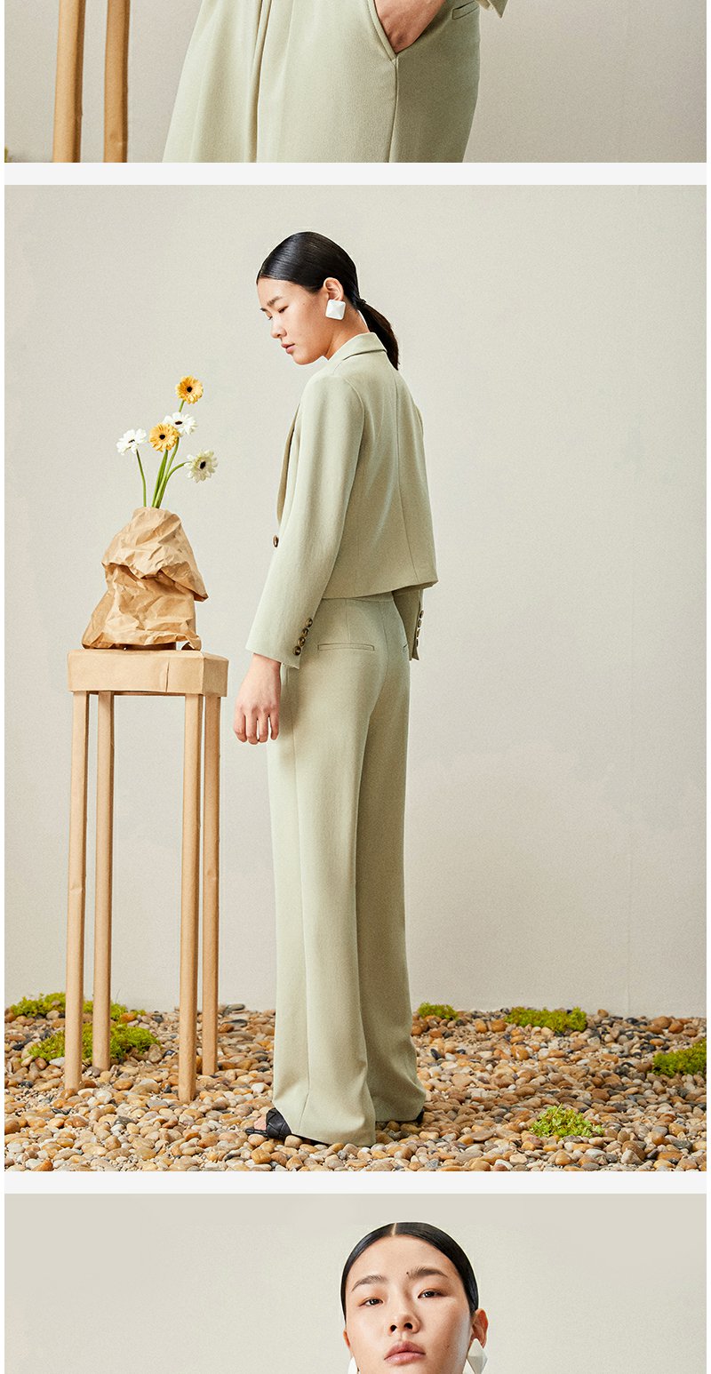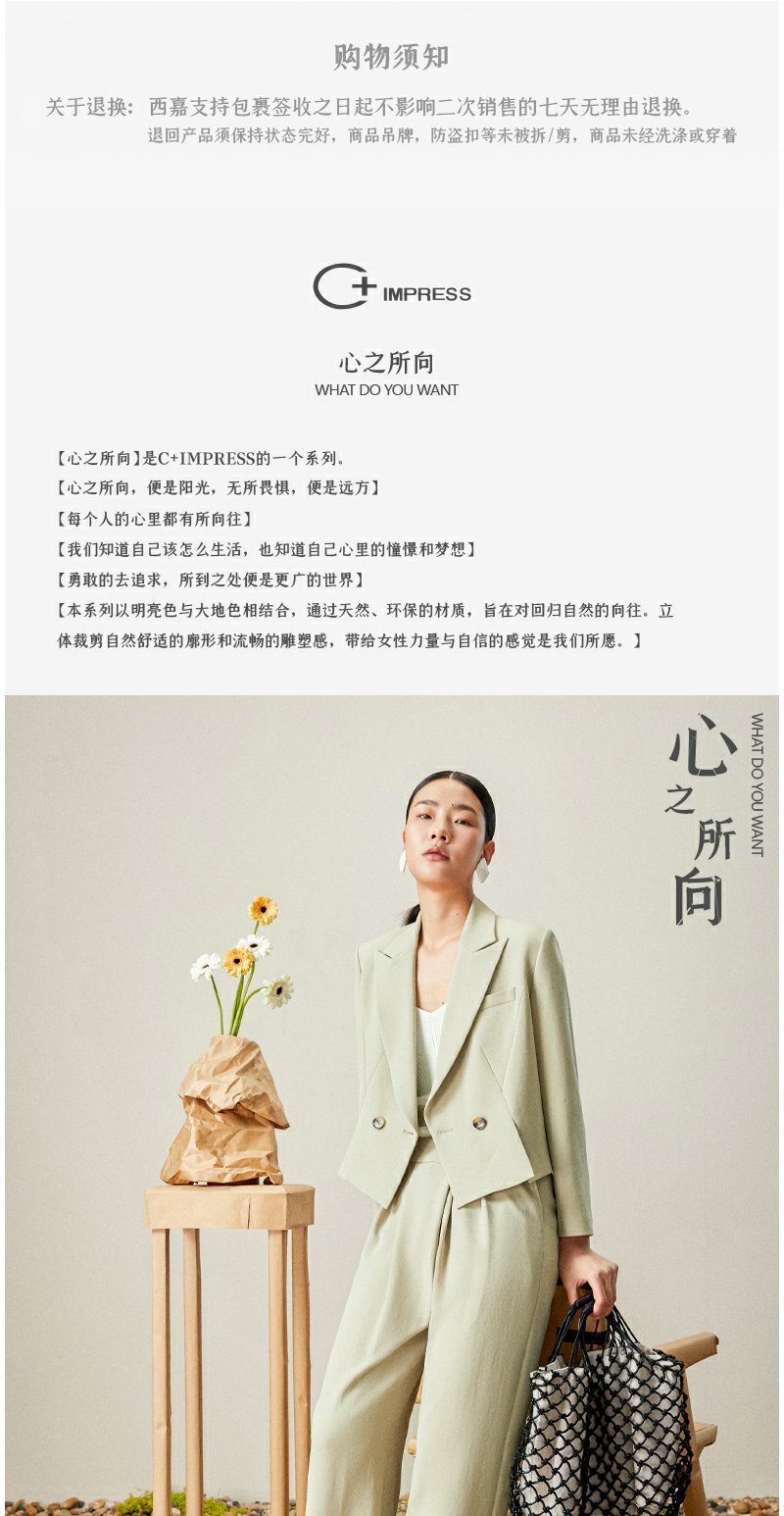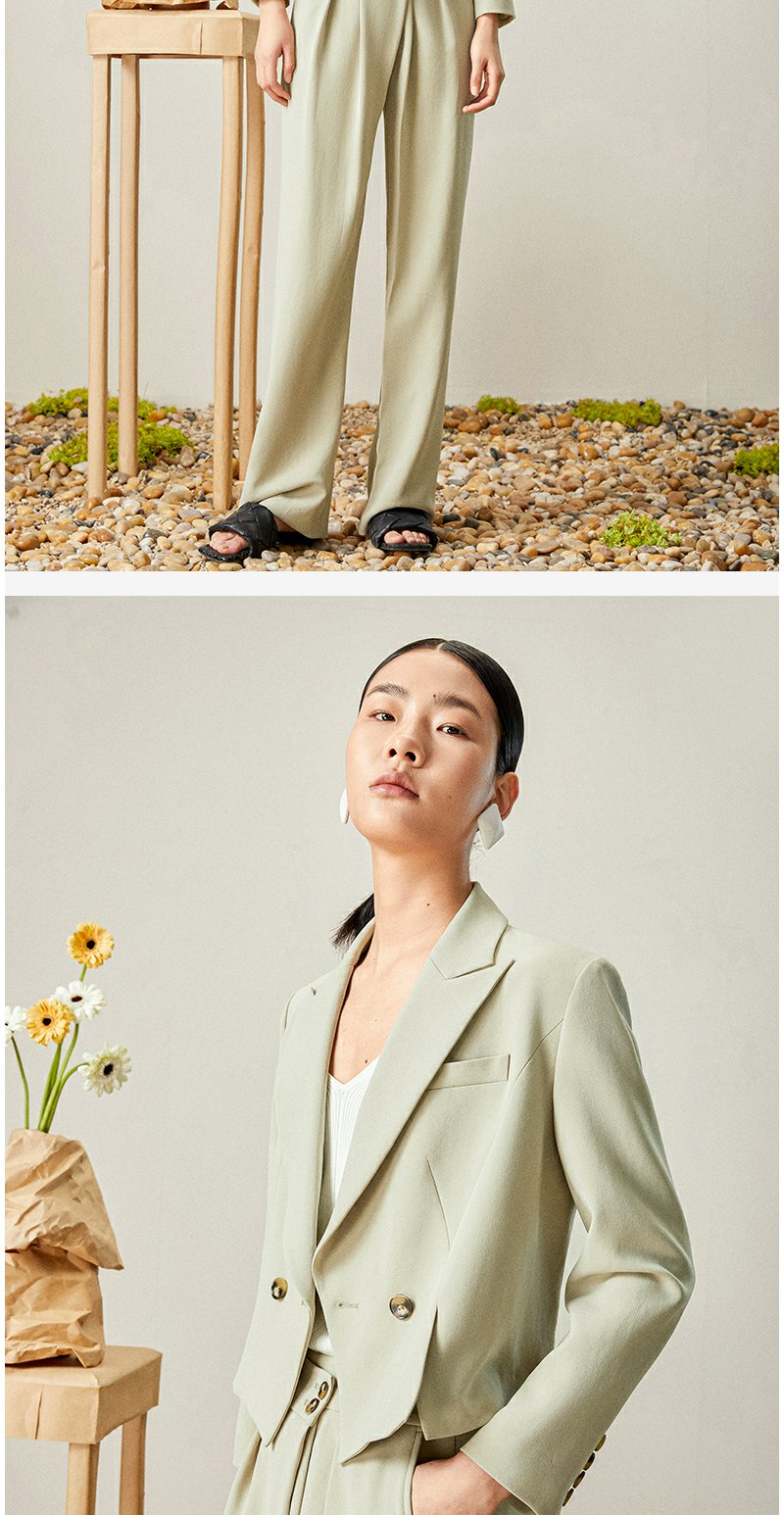 西嘉醋酸特殊分割设计 通勤简约短款小西装女高腰斜门襟褶裥及地西裤