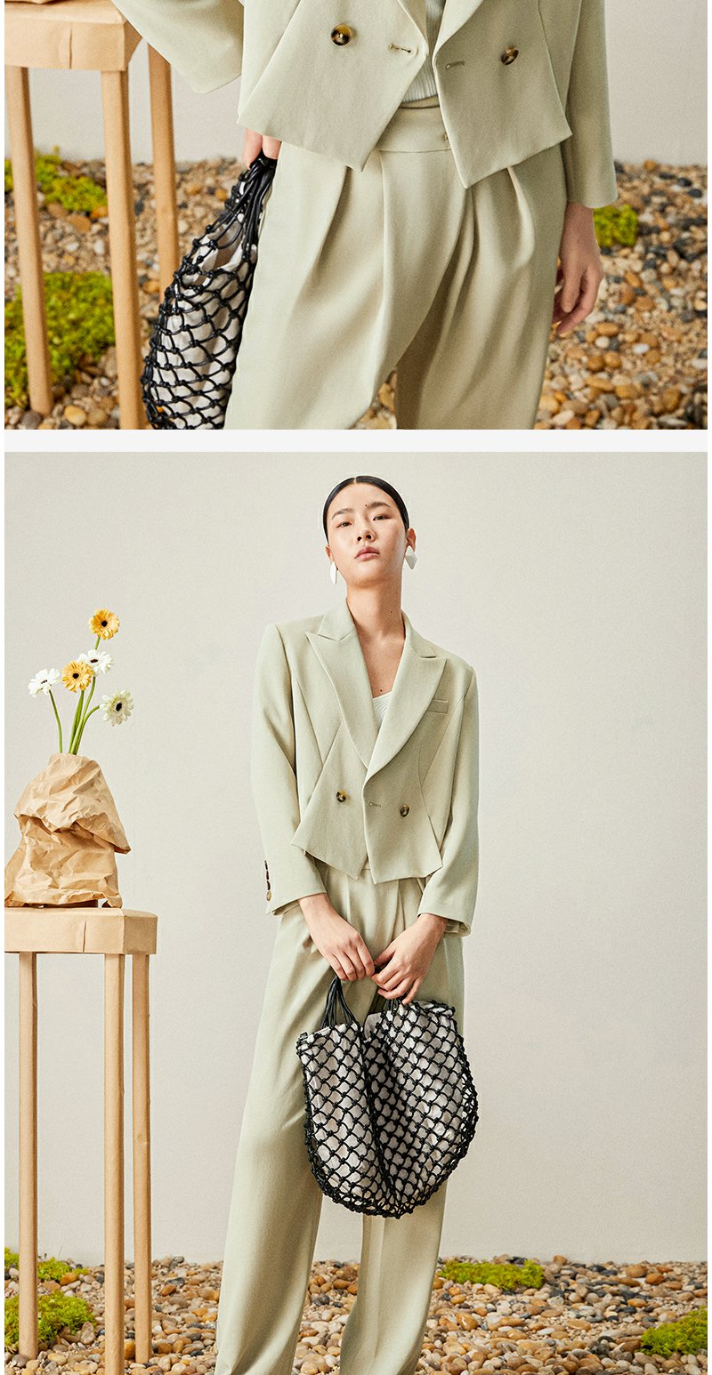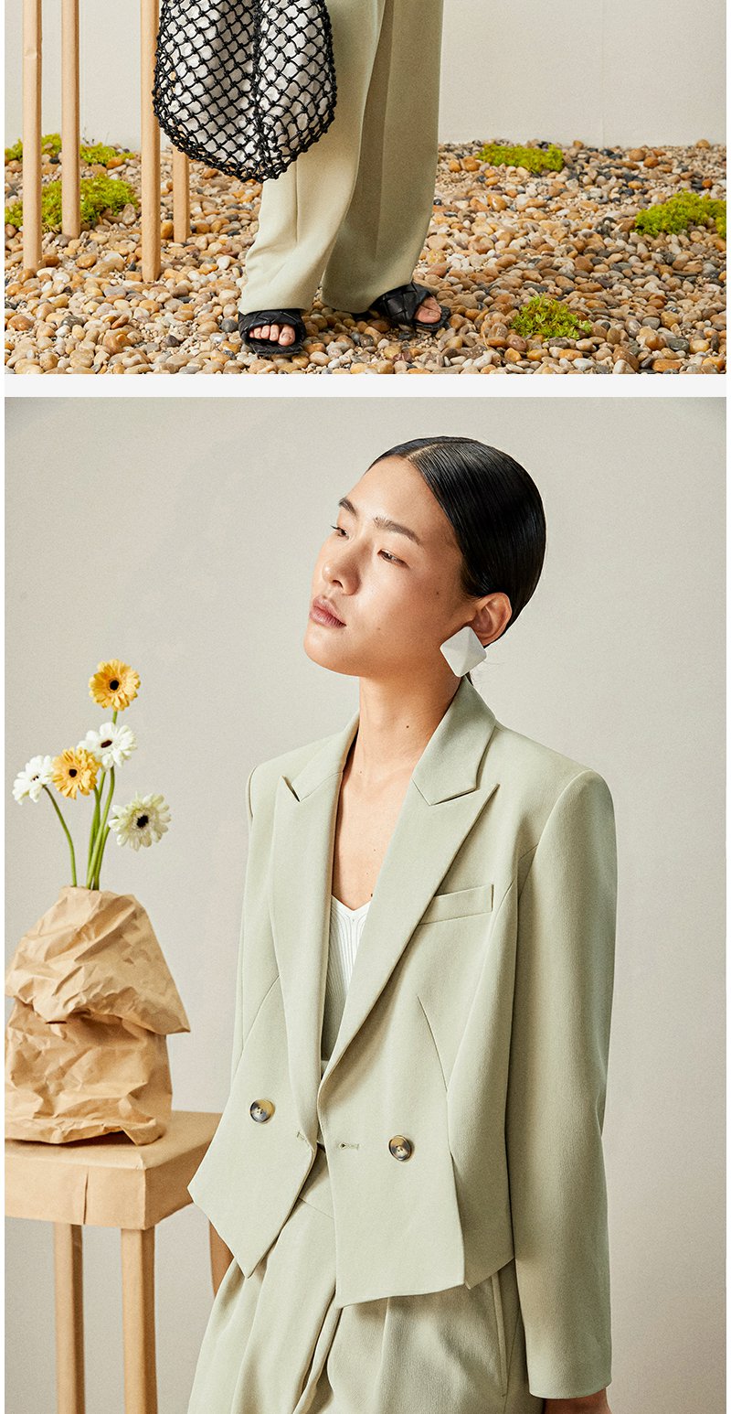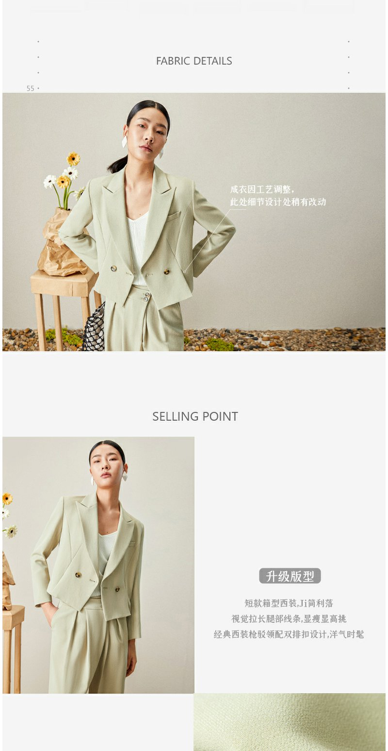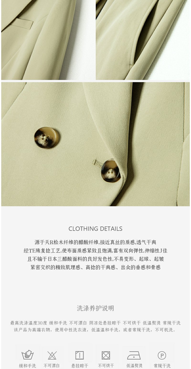 西嘉醋酸特殊分割设计 通勤简约短款小西装女高腰斜门襟褶裥及地西裤