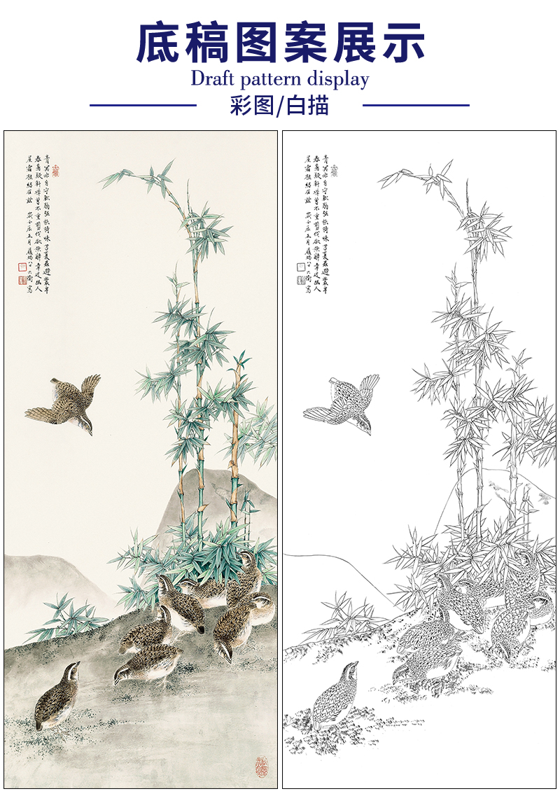 吕大卫花鸟工笔画白描底稿《翠竹鹌鹑》临摹勾线高清打印稿A685