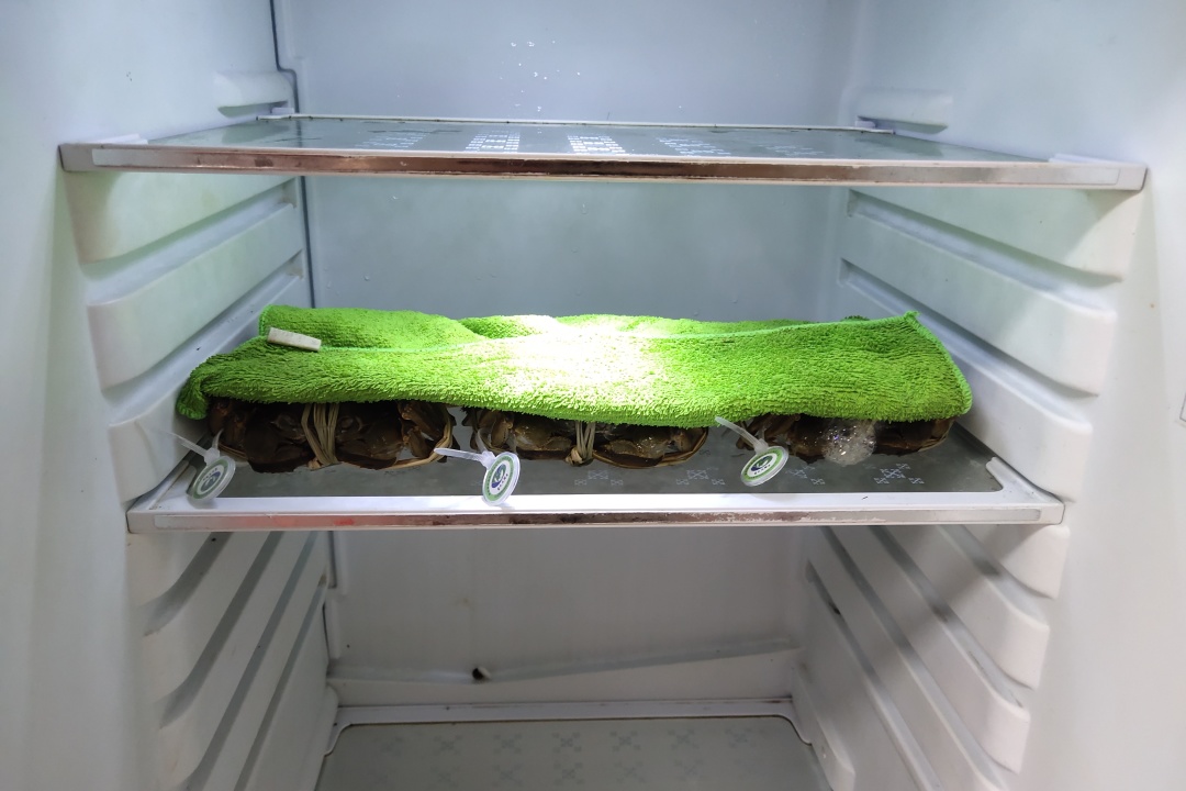 3.收到大闸蟹后最好两天内吃掉,可以放到冰箱里冷藏,盖上湿毛巾。