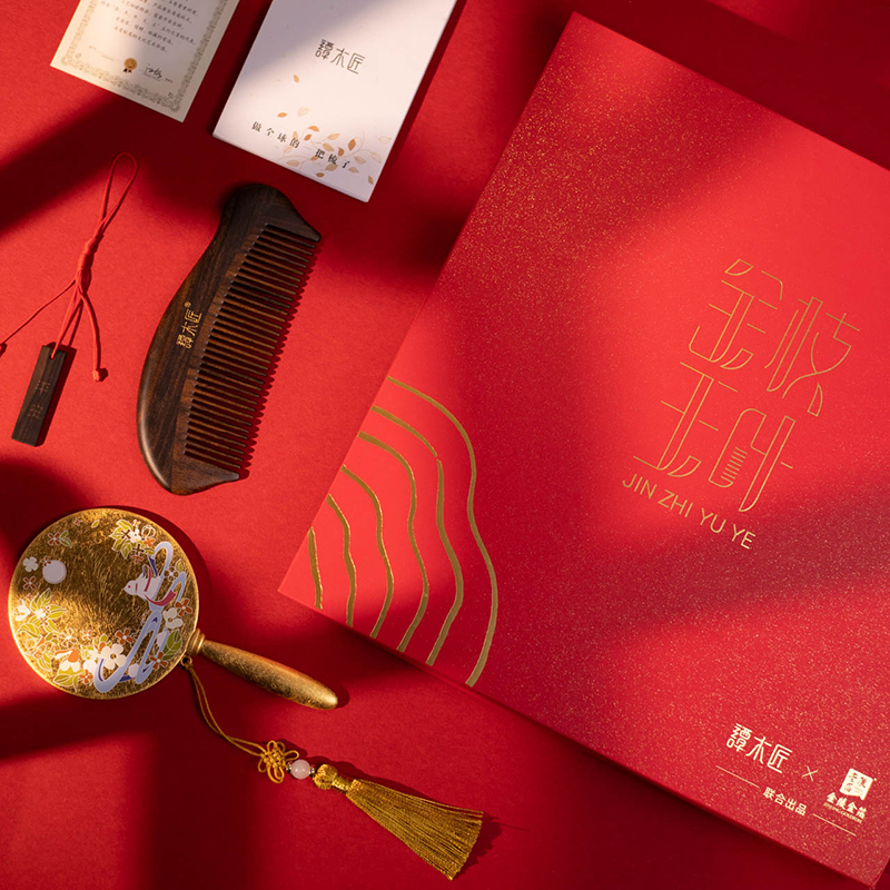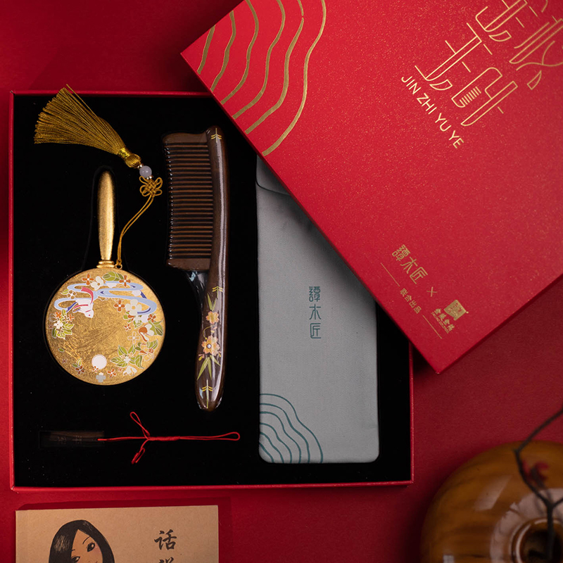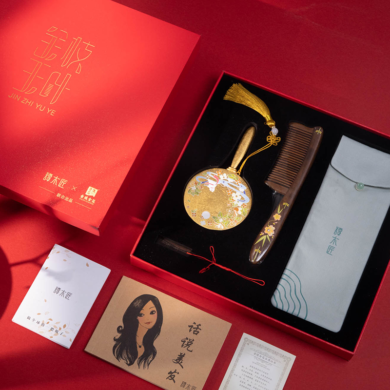 谭木匠金枝玉叶套装(首批限量100套)内含:谭木匠木梳、金陵金箔镜子、木质书签 包装盒尺寸25*25*3cm