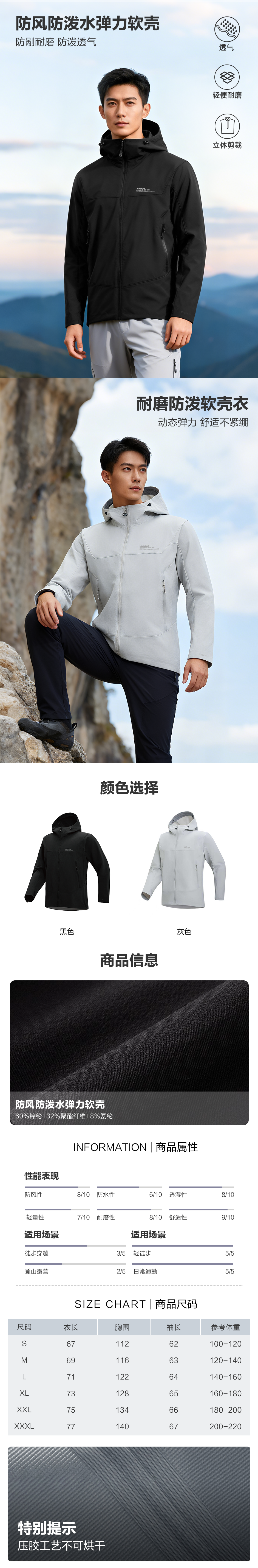 防风防泼水弹力软壳外套