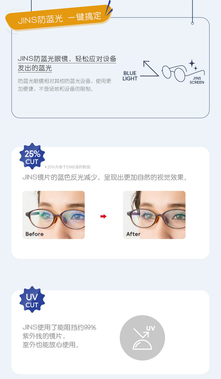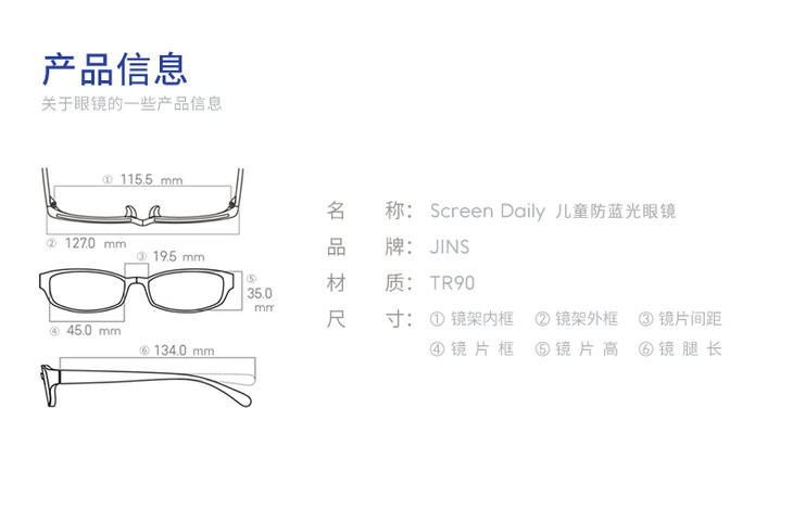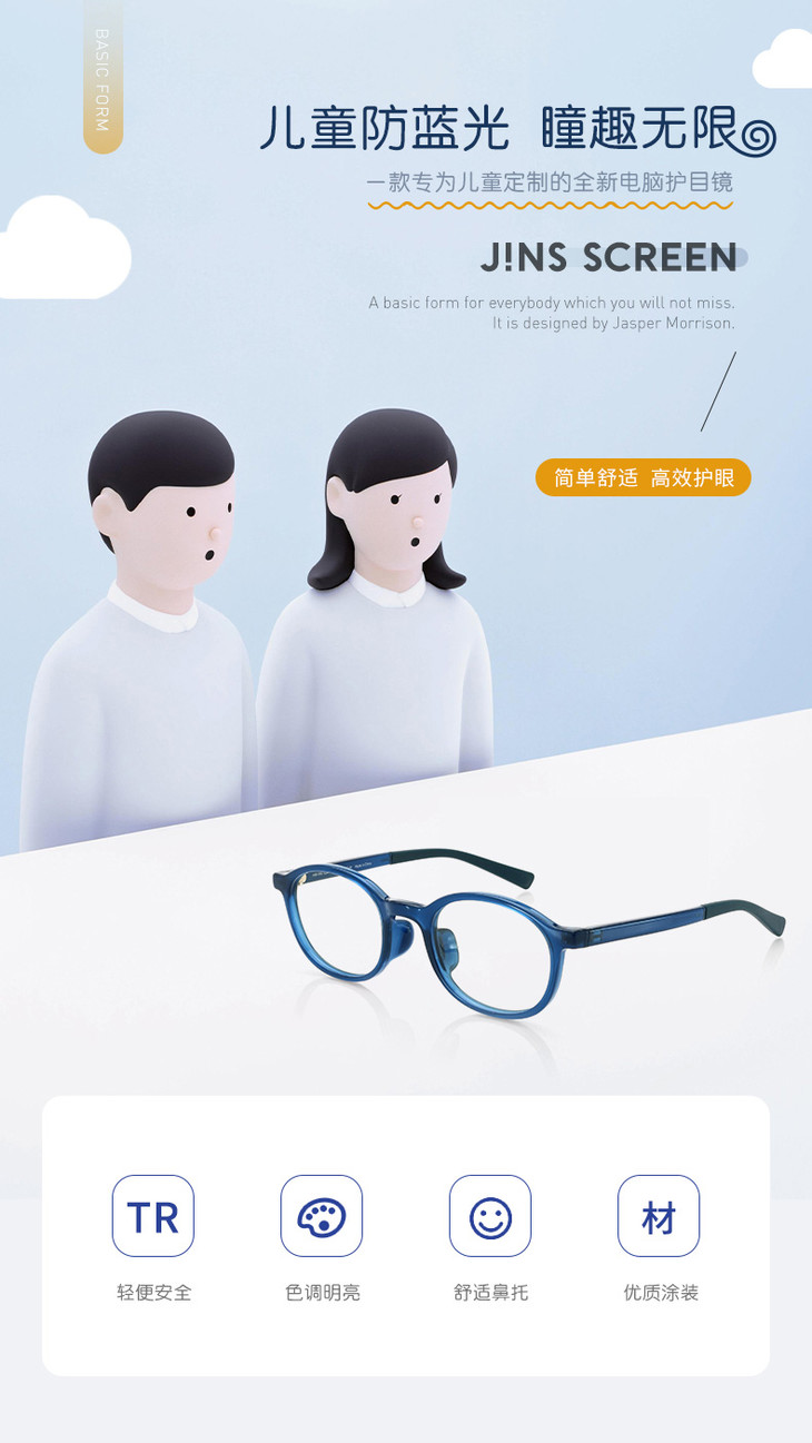 JINS睛姿儿童防蓝光防辐射电脑护目镜眼镜