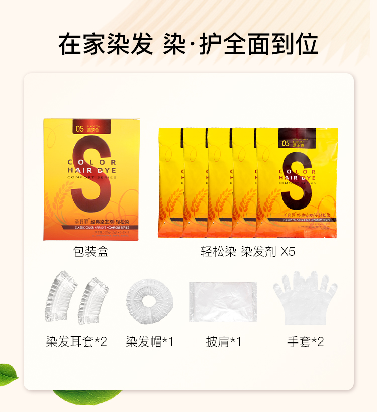 【独立小袋装】圣诗婷轻松染 3盒送染发工具 植物调理型染发膏 随心补染