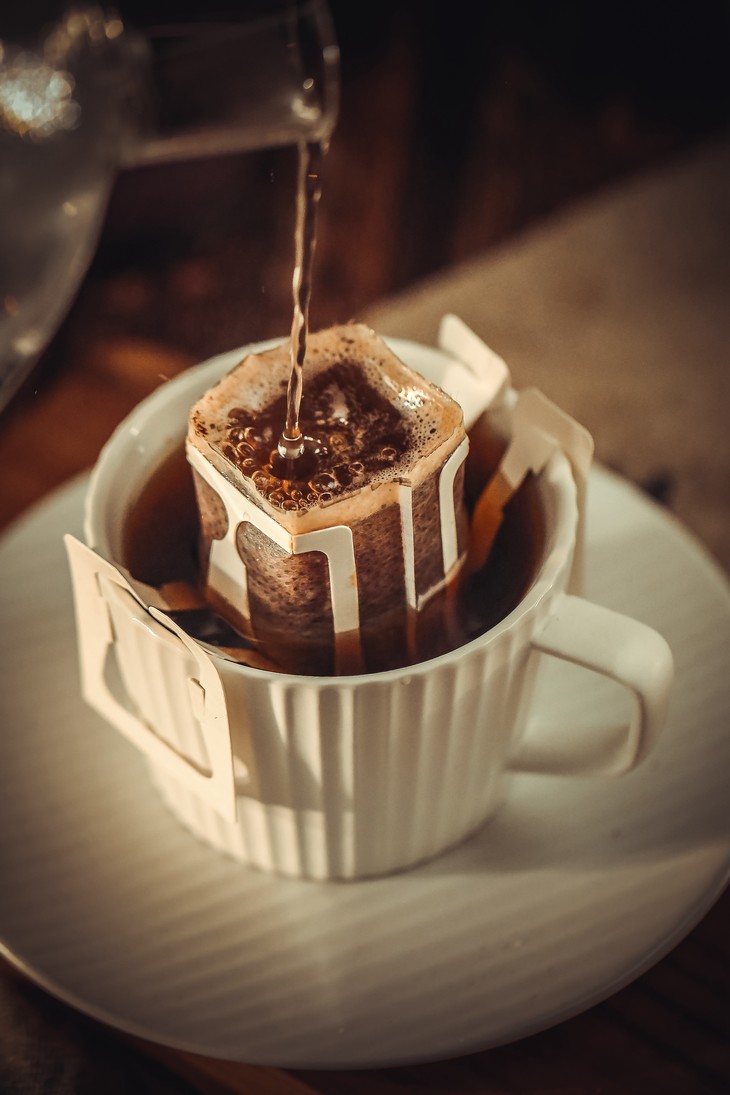 撕袋后撑开两侧纸质夹板挂在杯子上,缓慢用少量开水注入挂耳焖蒸15秒,然后分4-5次注入150毫升开水,取下挂耳包丢入垃圾桶,enjoy~
