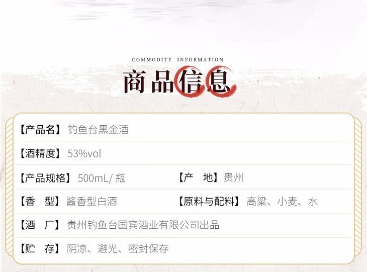 【推荐】钓鱼台黑金酒 酱香型白酒 53度 500ml