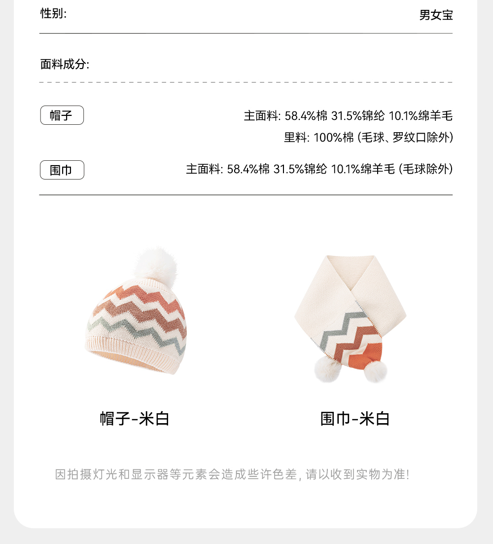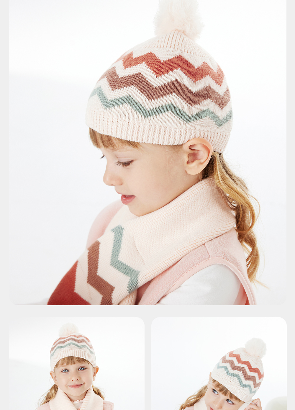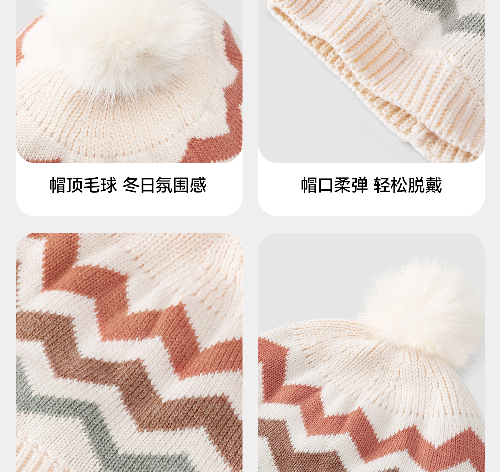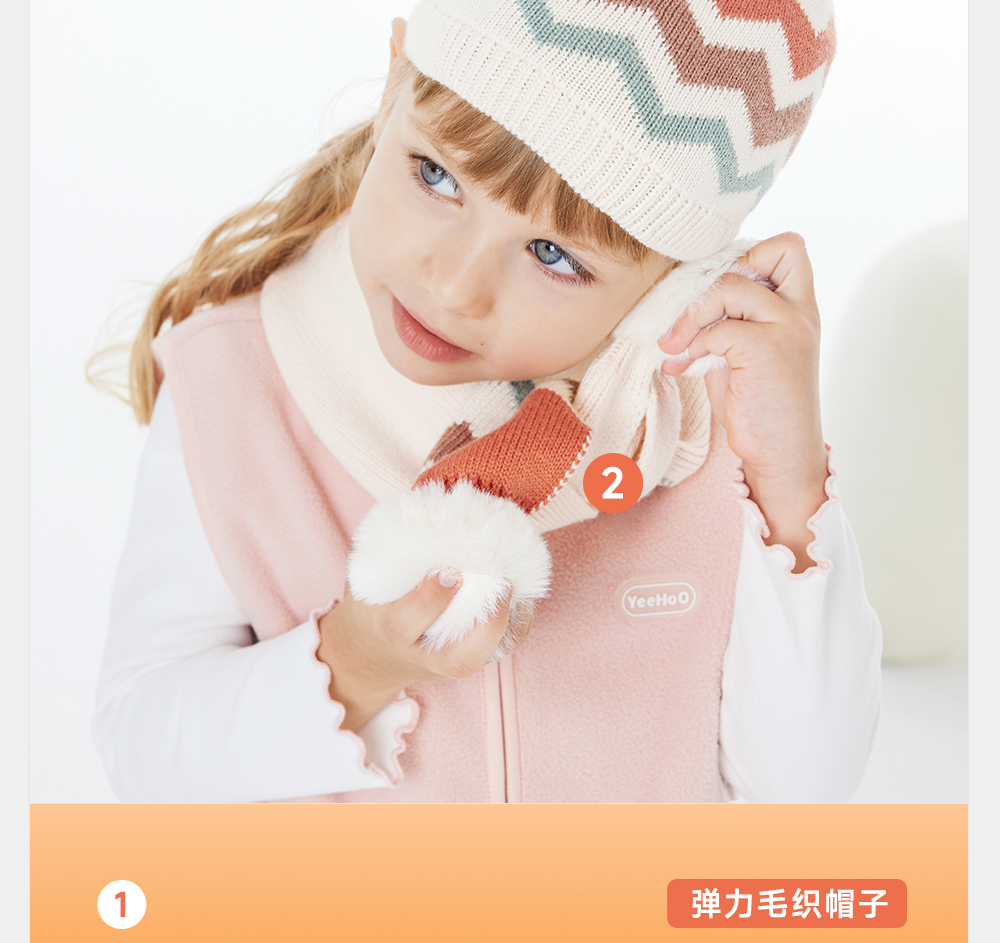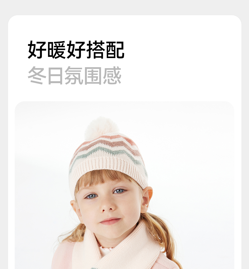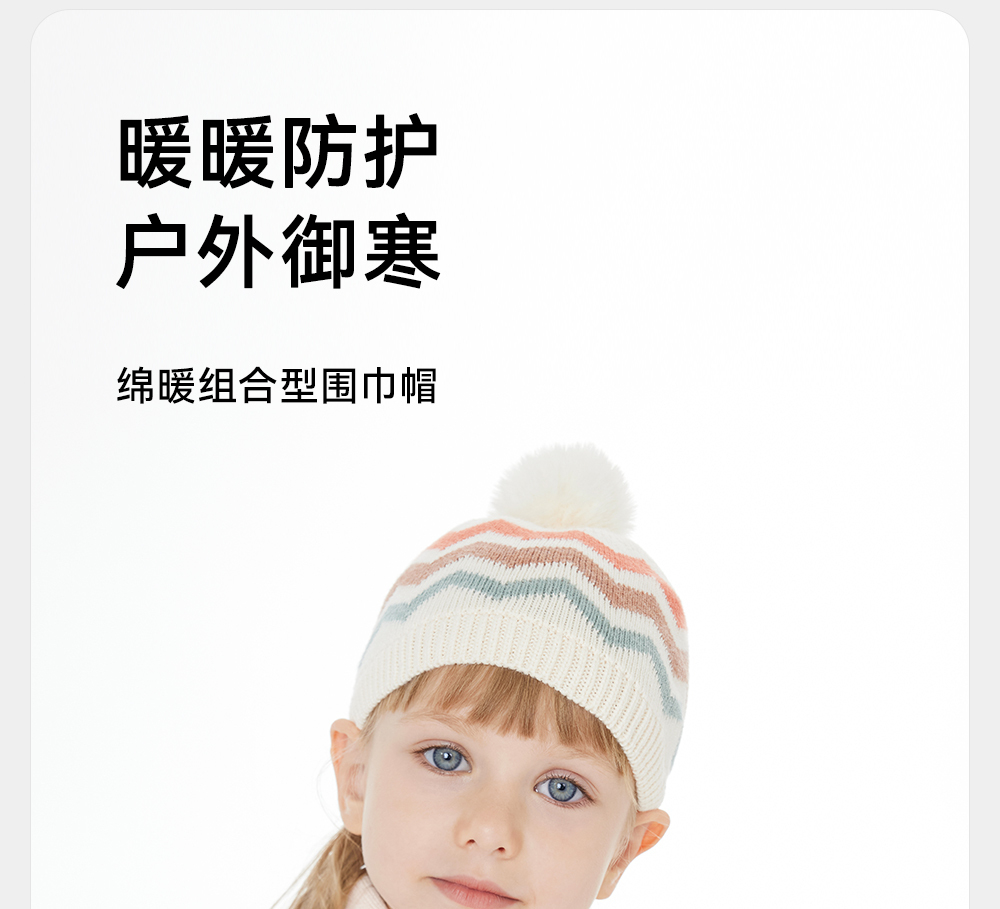 英氏儿童羊毛帽子男童圆帽秋冬外出围巾保暖女童毛线帽新款