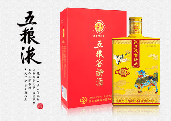 【推荐】五粮液股份 五粮窖龄酒 浓香型窖龄20年 白酒 500ml 52度 单瓶