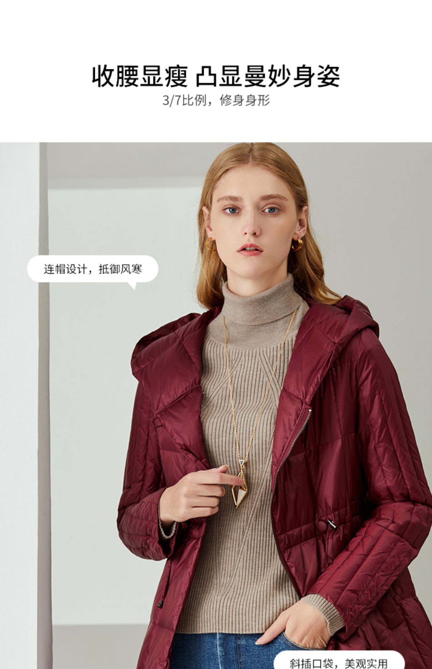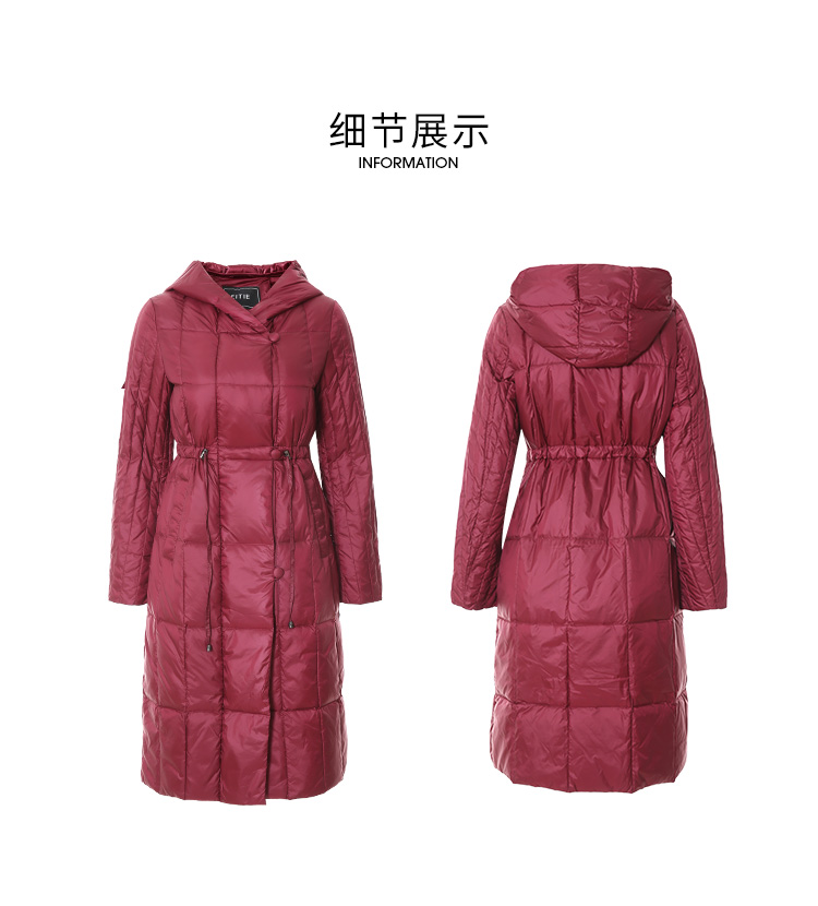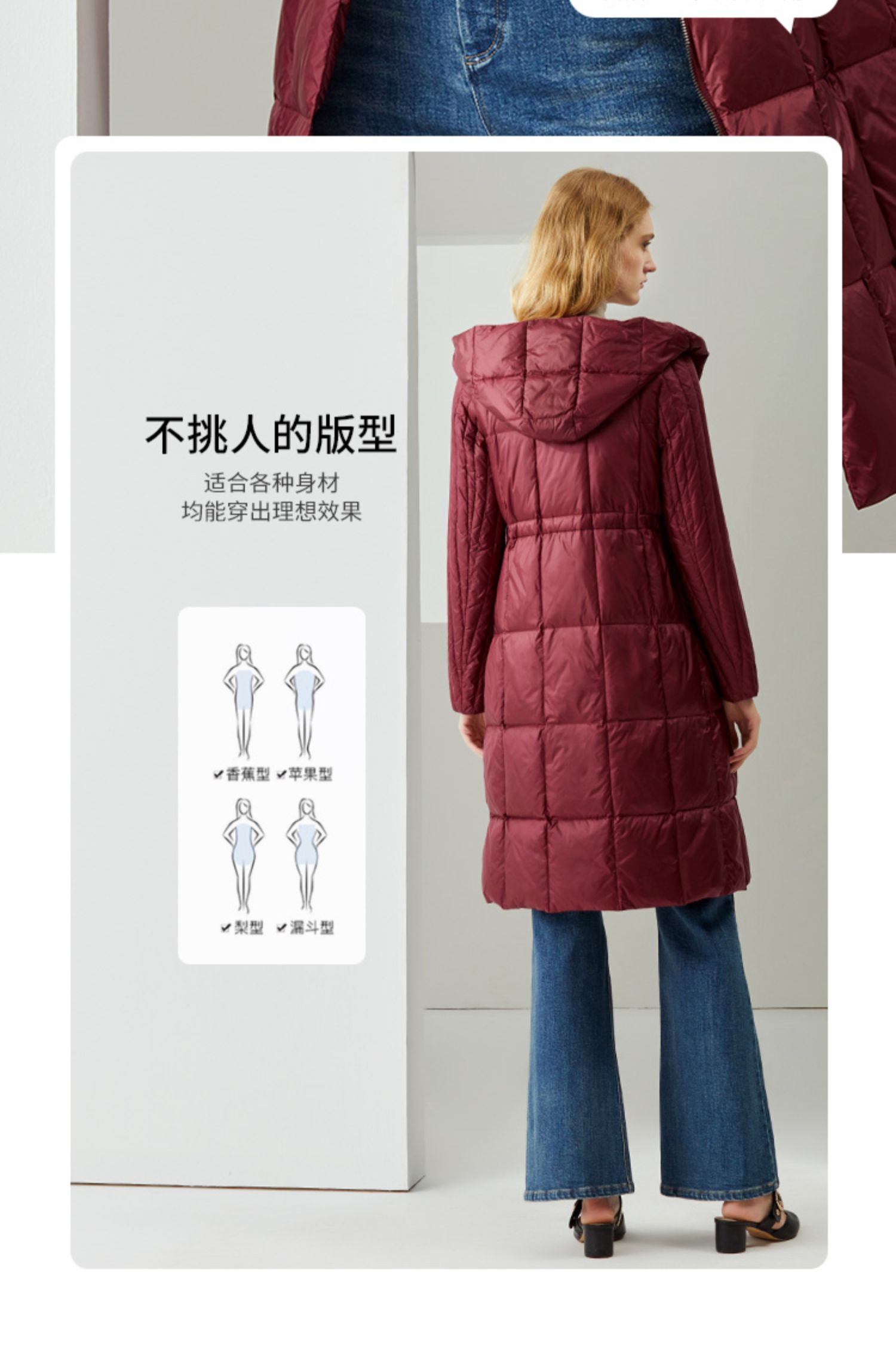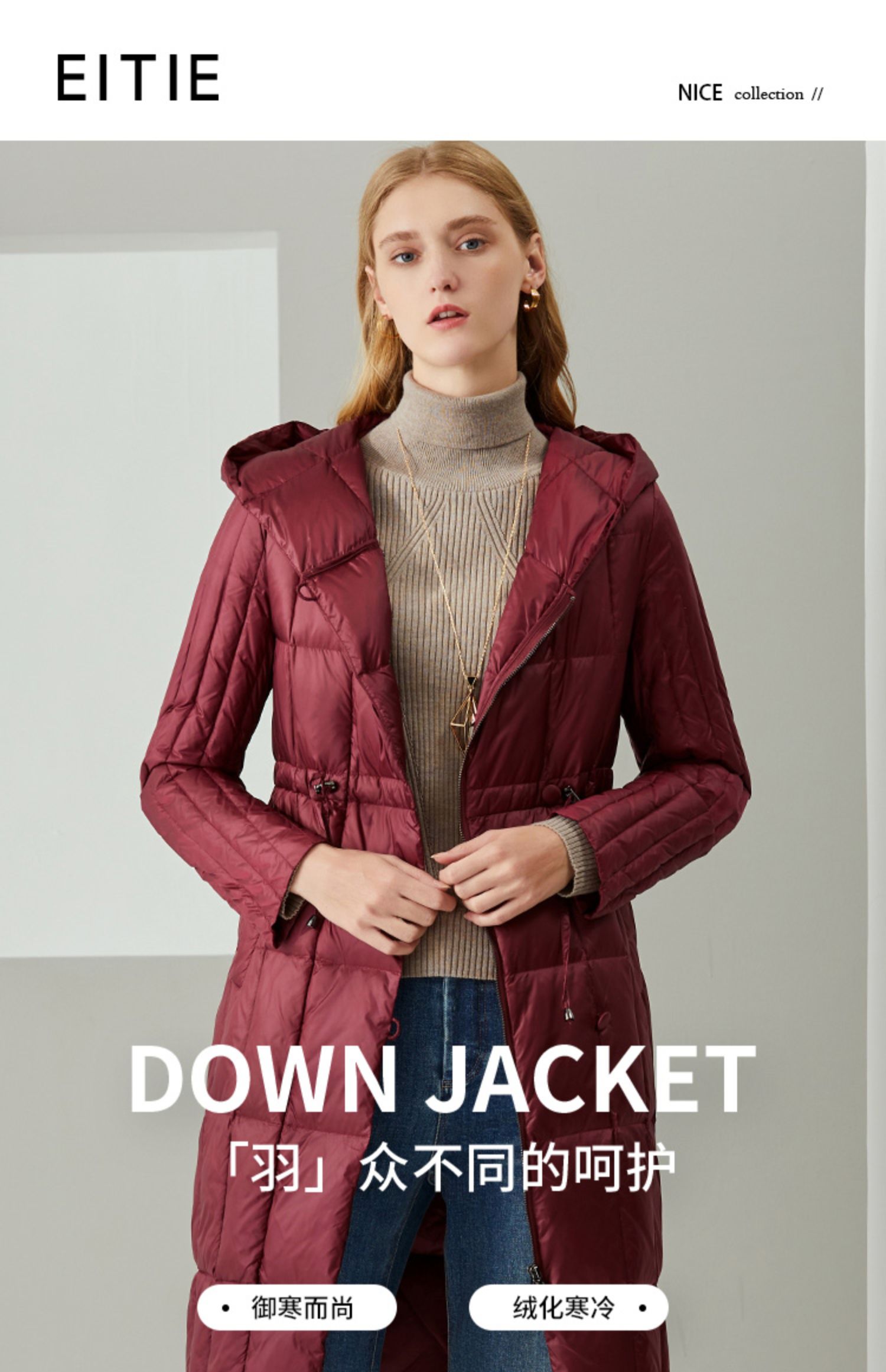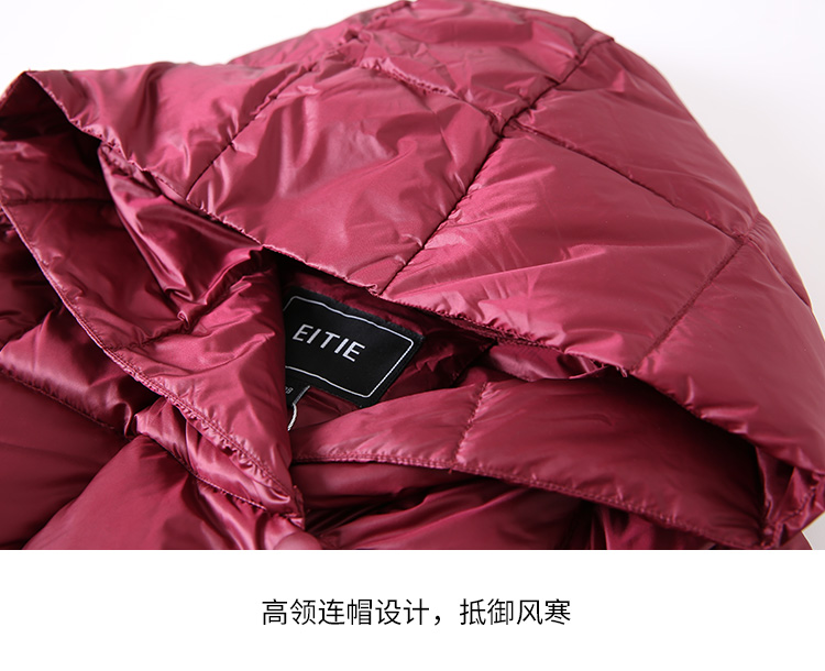 EITIE爱特爱冬季新款简约纯色收腰显瘦保暖连帽长款羽绒服女6411112