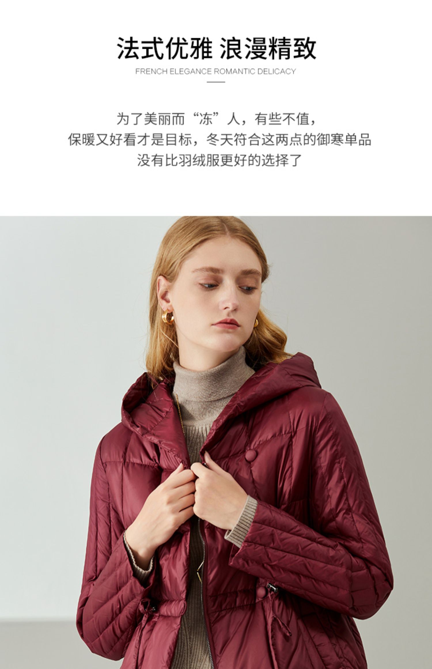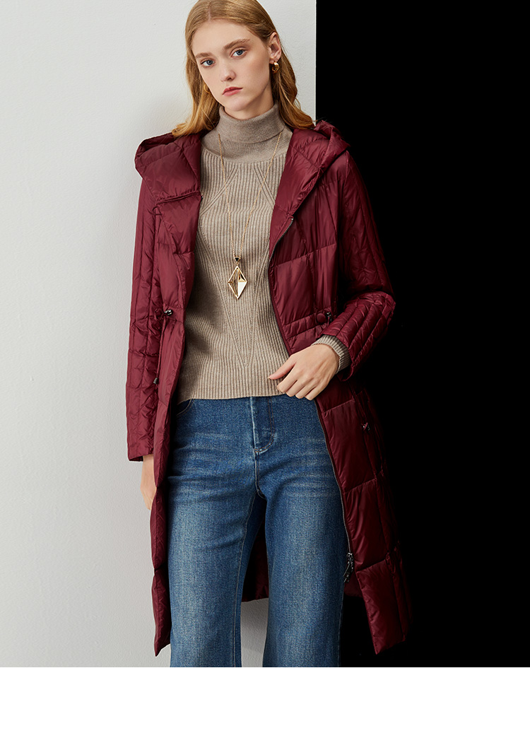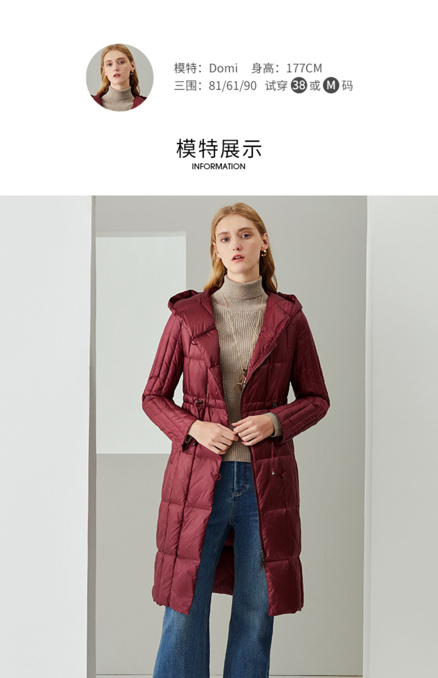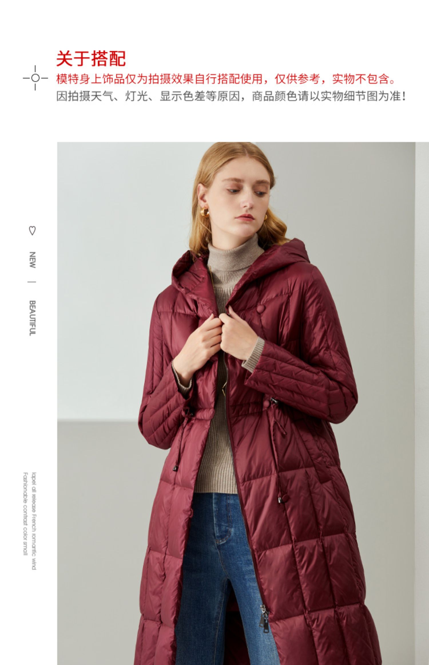 EITIE爱特爱冬季新款简约纯色收腰显瘦保暖连帽长款羽绒服女6411112
