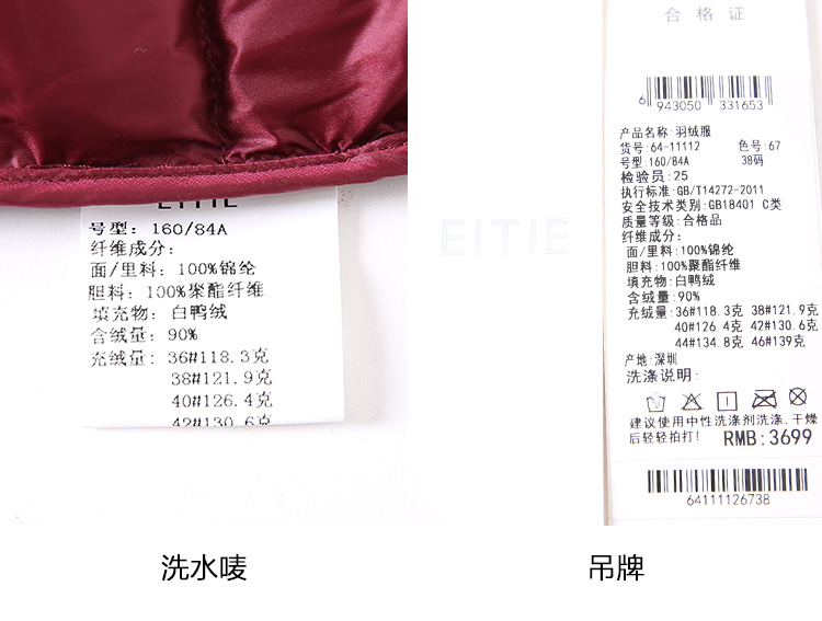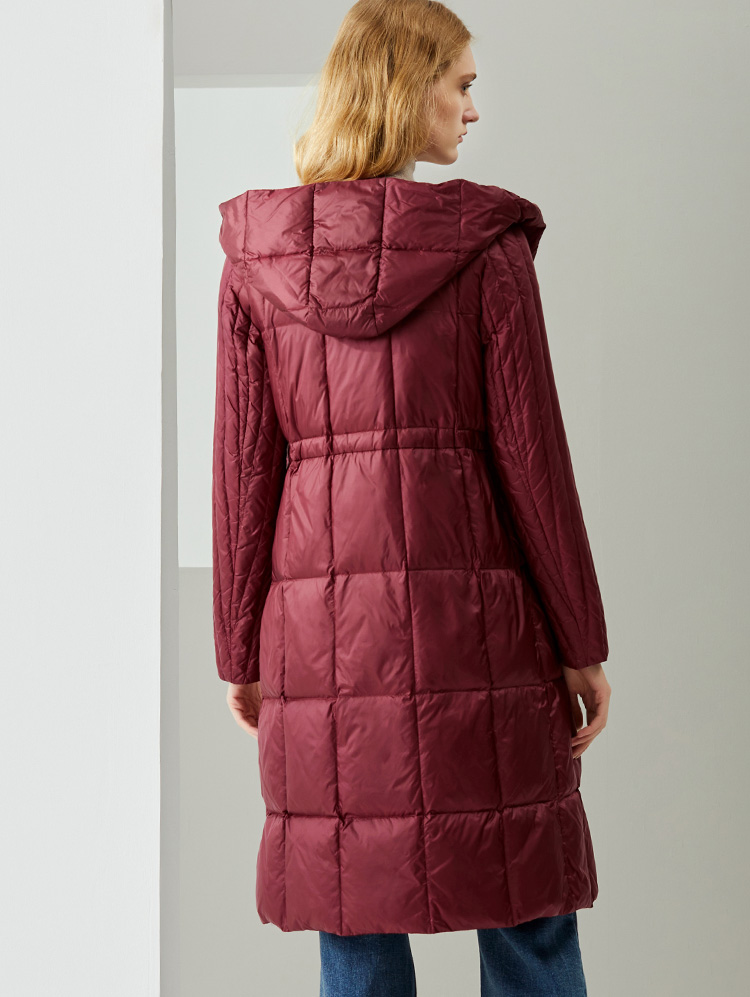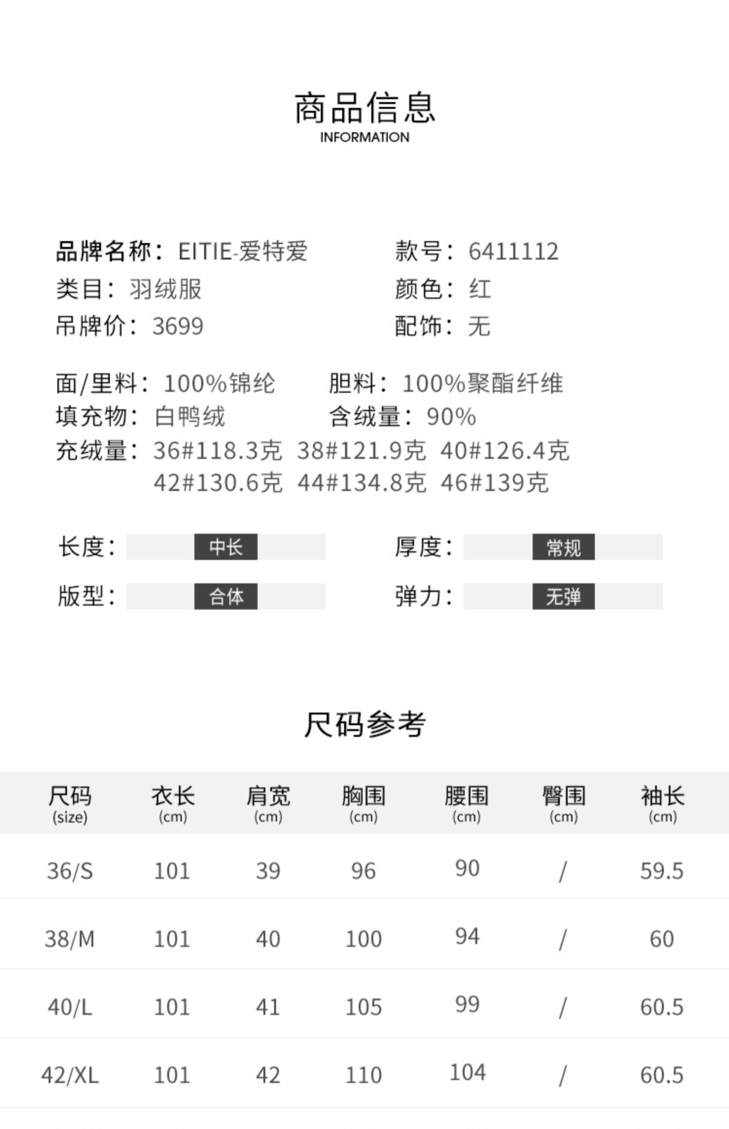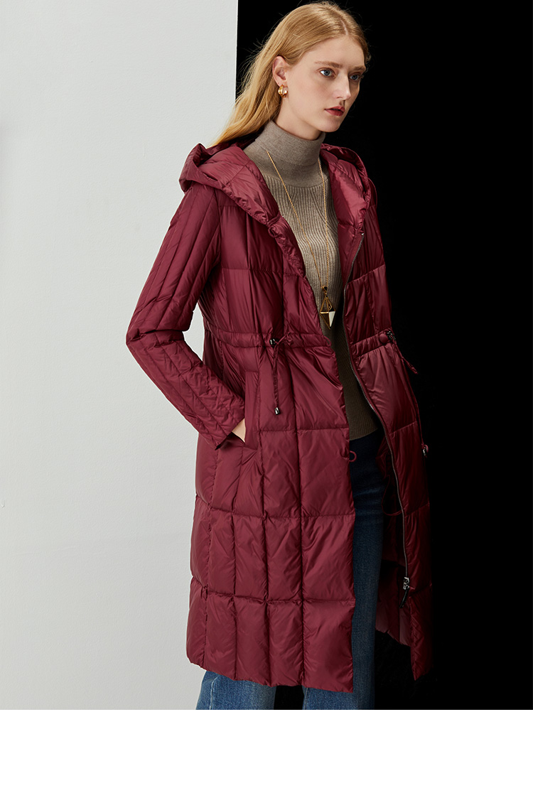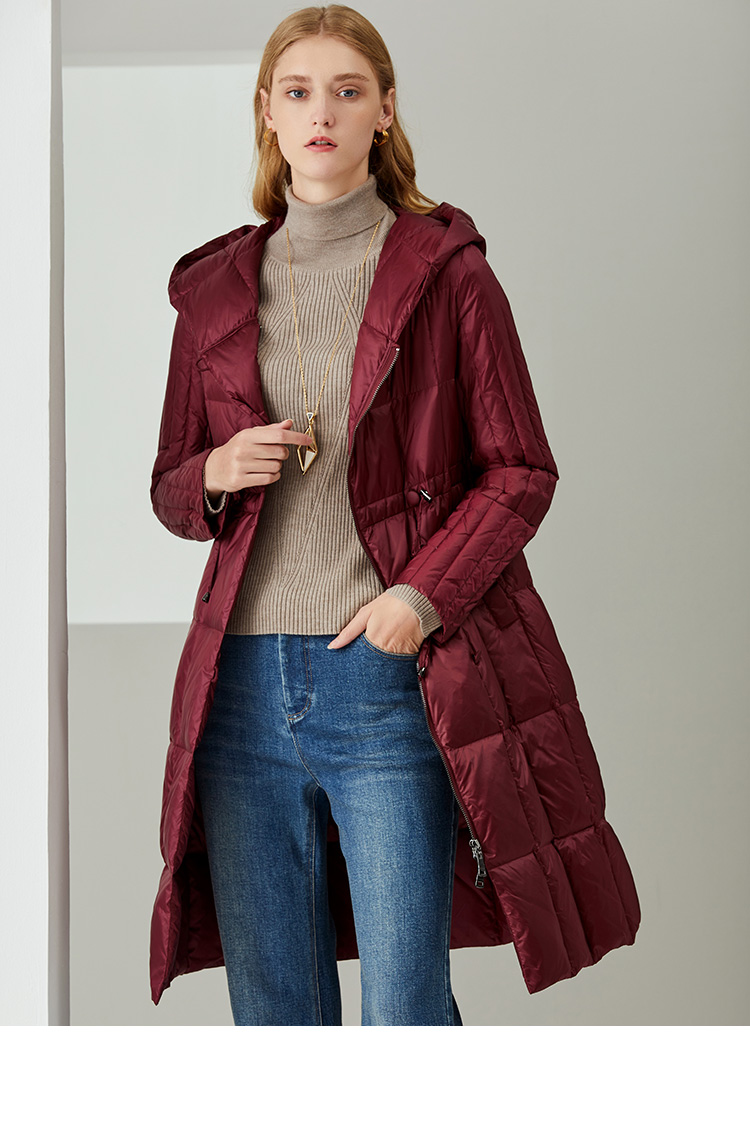 EITIE爱特爱冬季新款简约纯色收腰显瘦保暖连帽长款羽绒服女6411112