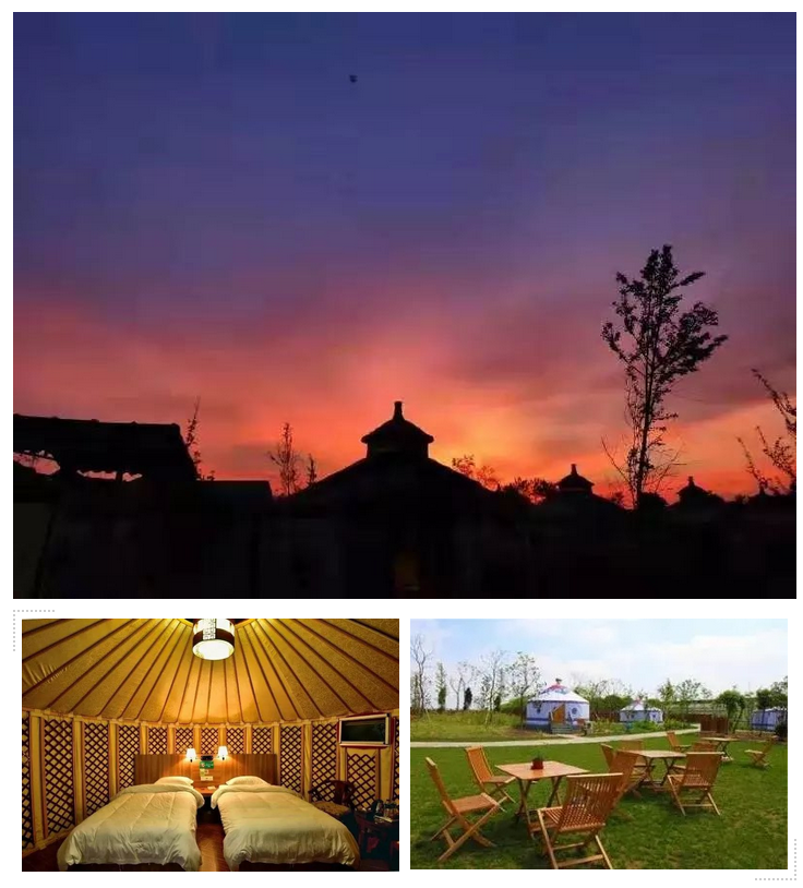 日落西山,温柔的阳光给蒙古包镀上了一层光