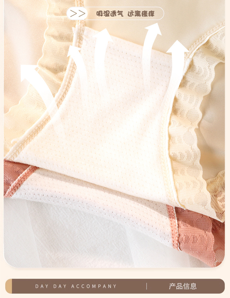 雀说 【6条】加大码80-200斤蕾丝高腰提臀收腹薄款女士内裤 8826