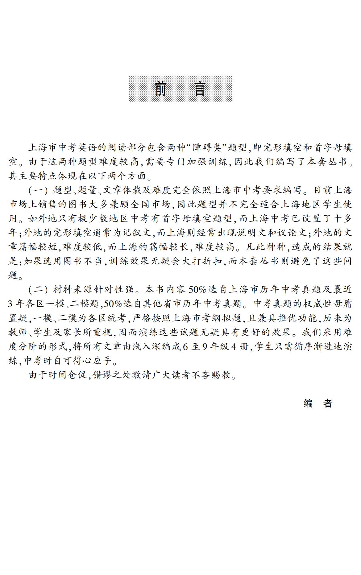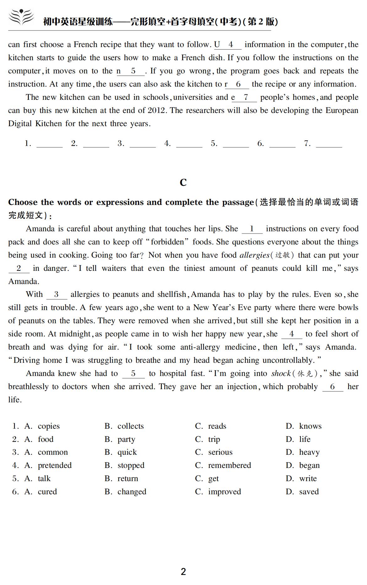 初中英语星级训练———完形填空+首字母填空( 中考)( 第 2 版) 9787313245441