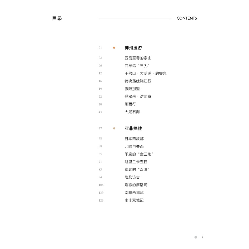 书稿为作者多年来游历世界各地的游记,情境描写生动,文化解读深刻,趣味性较强。三十二篇游记融文化、艺术、历史知识于一体,记录了作者彼时彼地的经历和感受。全书分为神州漫游(八篇)、亚非探胜(九篇)、欧澳掠影(八篇)、美国印象(七篇),每篇文字配以精选的作者拍摄的200幅左右艺术摄影照片(部分图文已在《明报月刊》《信报月刊》《旅游世界》和《相机世界》等期刊发表过),与文学、旅游、摄影爱好者分享世界各地的风情和文化。