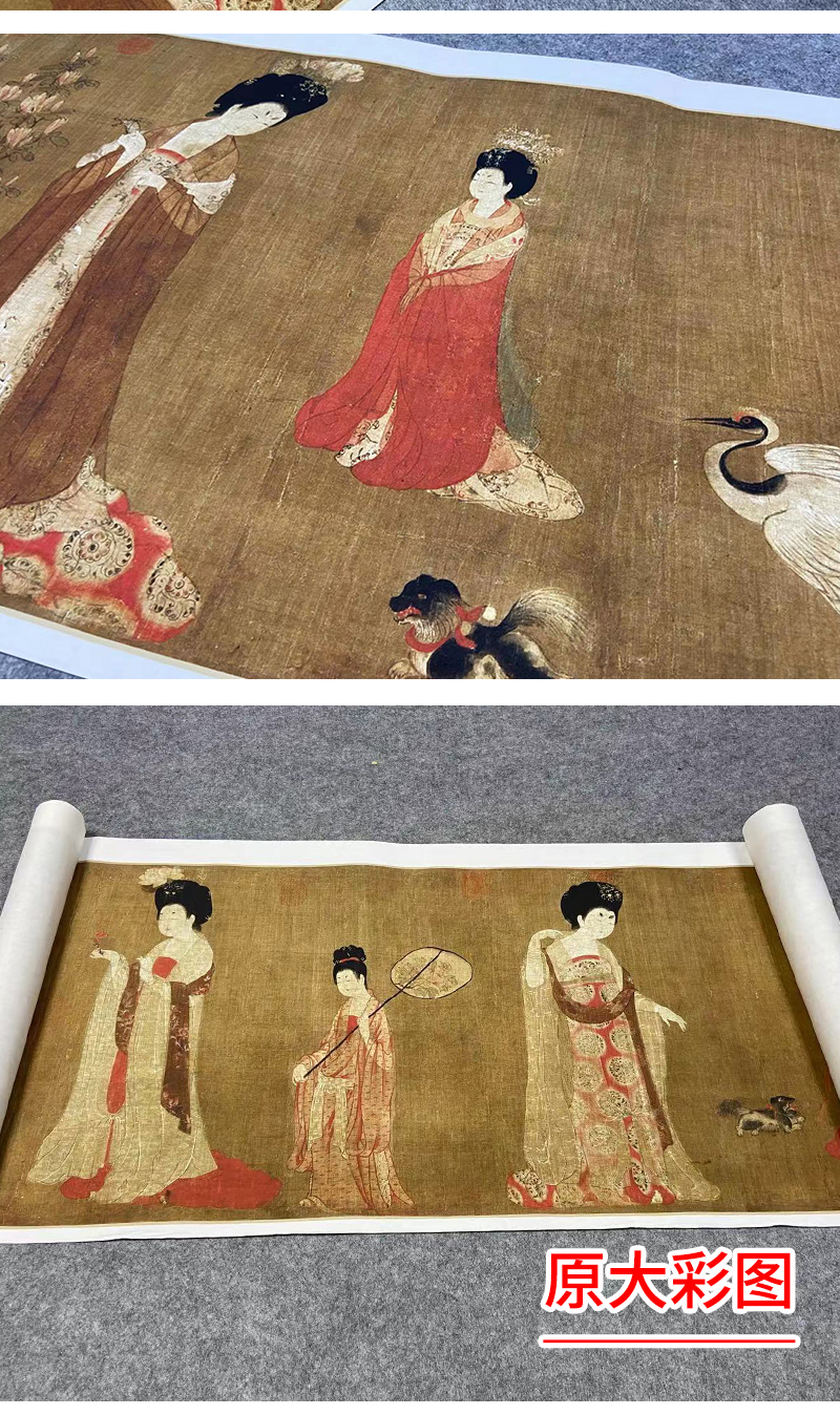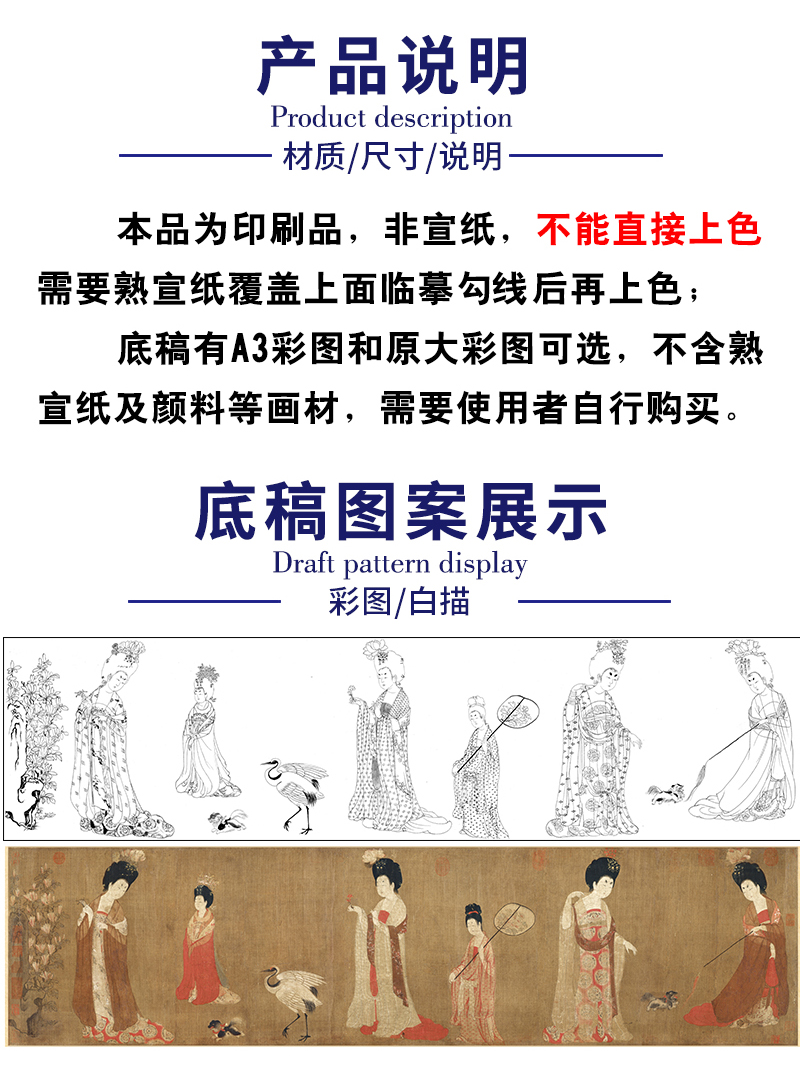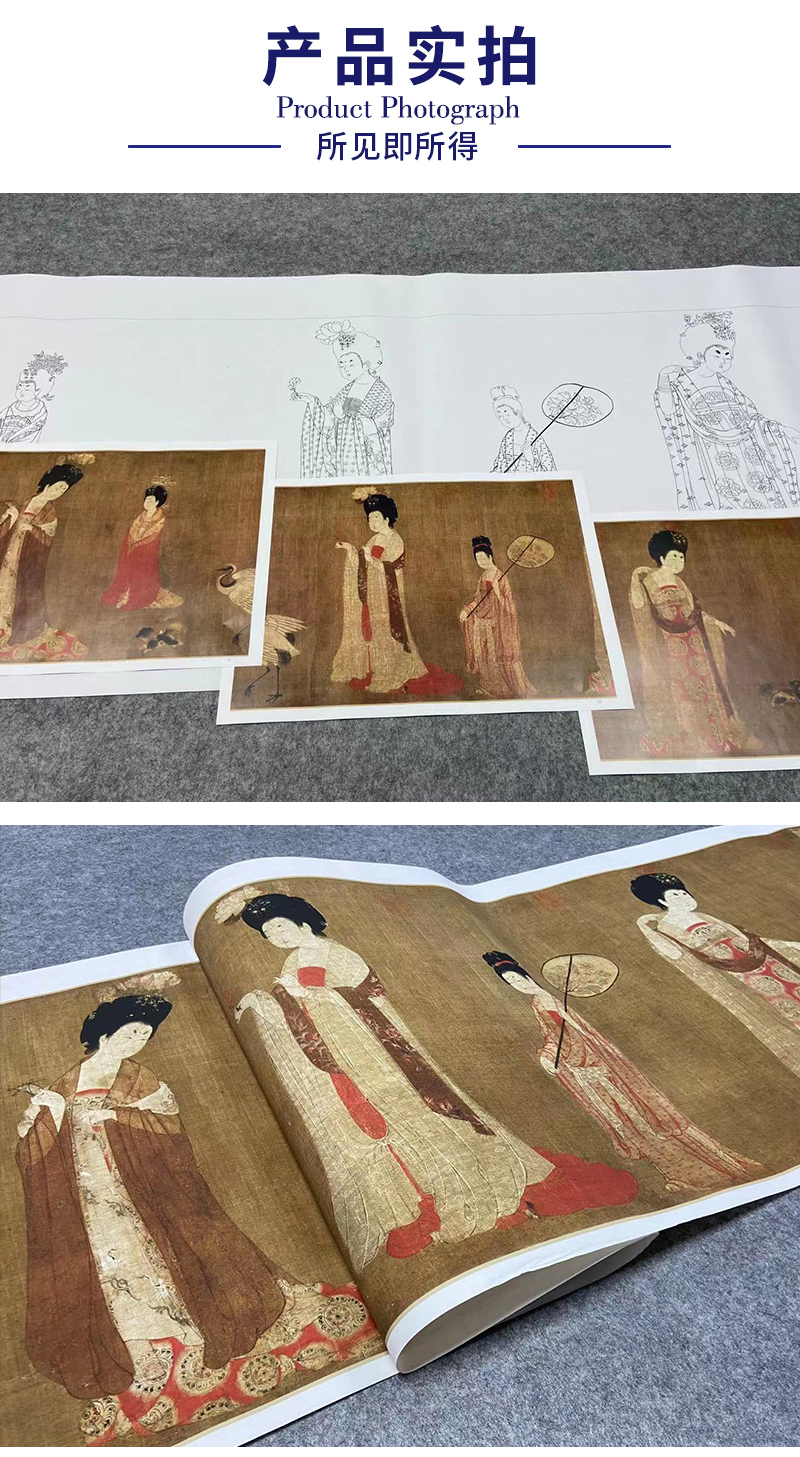 【长卷】工笔传统仕女人物画白描底稿古画长卷周肪《簪花仕女图》多种白描尺寸可选G006